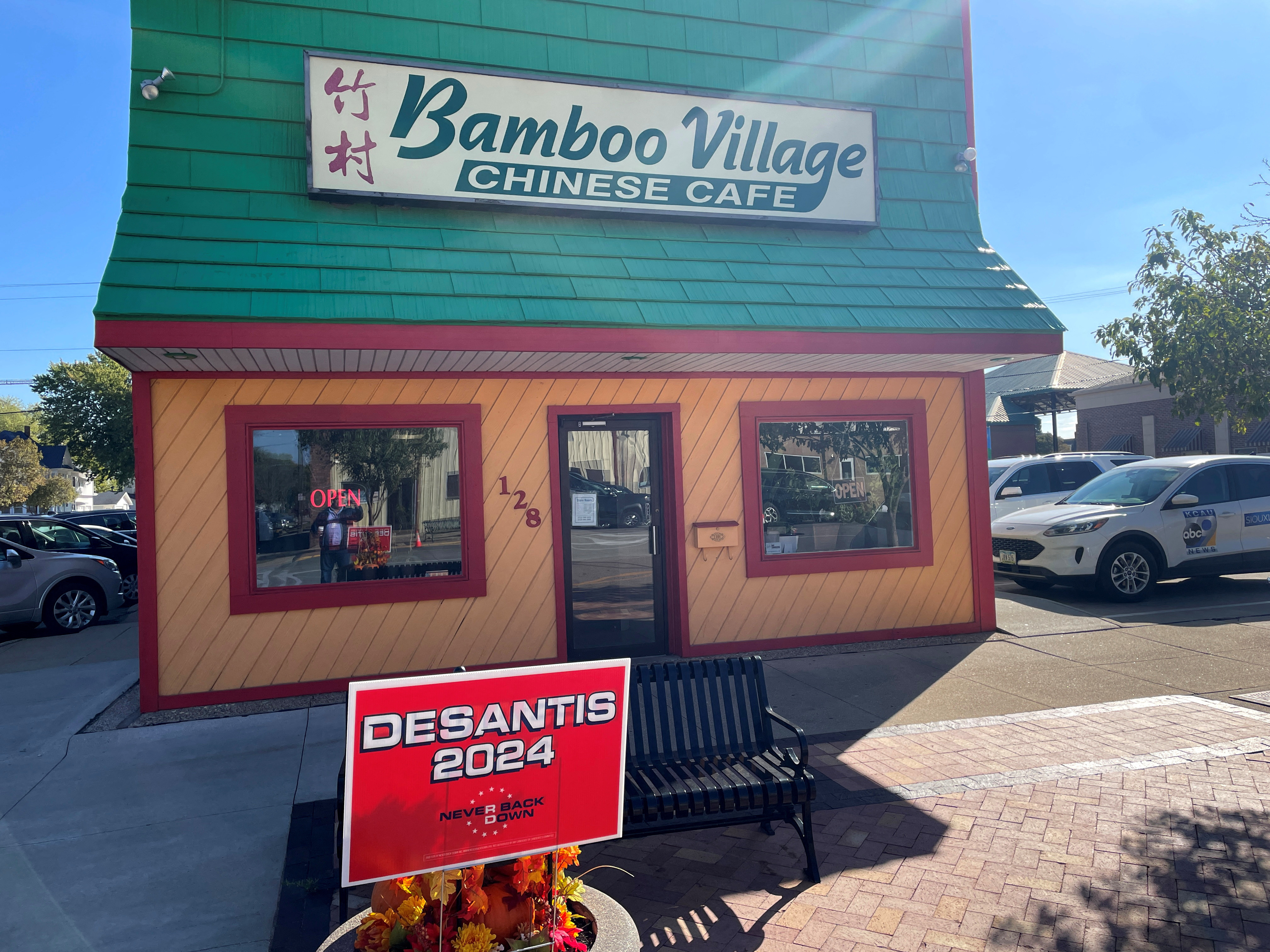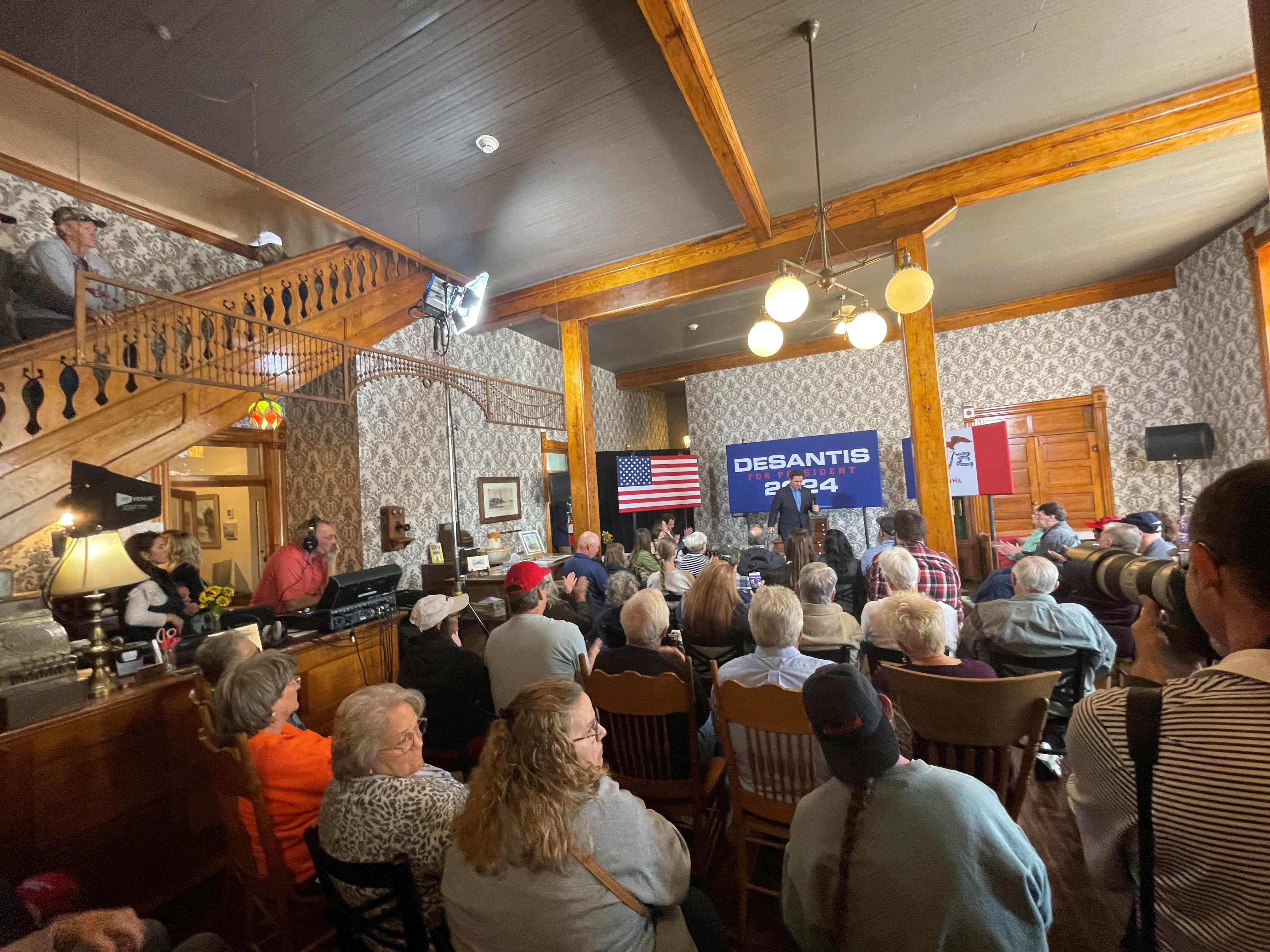 在爱荷华州的一个清晨,自封为“世界冰淇淋之都”的Le Mars(人口10,572),约有100人在一家冰淇淋店外等待DeSantis。Le Mars位于该州的西北角,是一个重度福音派地区,路边布满反堕胎标识。