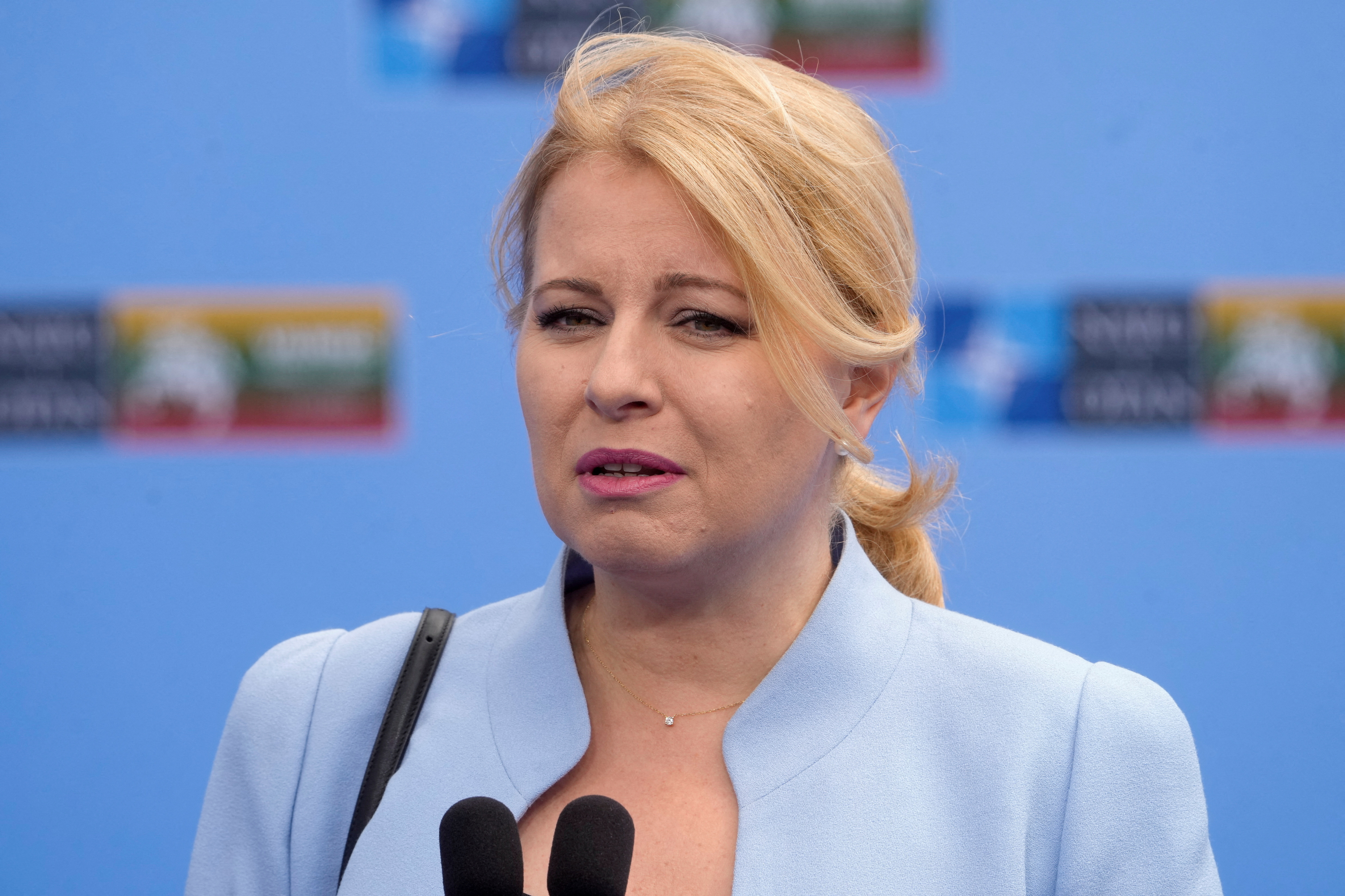 斯洛伐克总统祖扎娜·查普托娃在2023年7月11日立陶宛维尔纽斯举行的北约领导人峰会前向媒体发表讲话。路透社/Ints Kalnins/文件照片