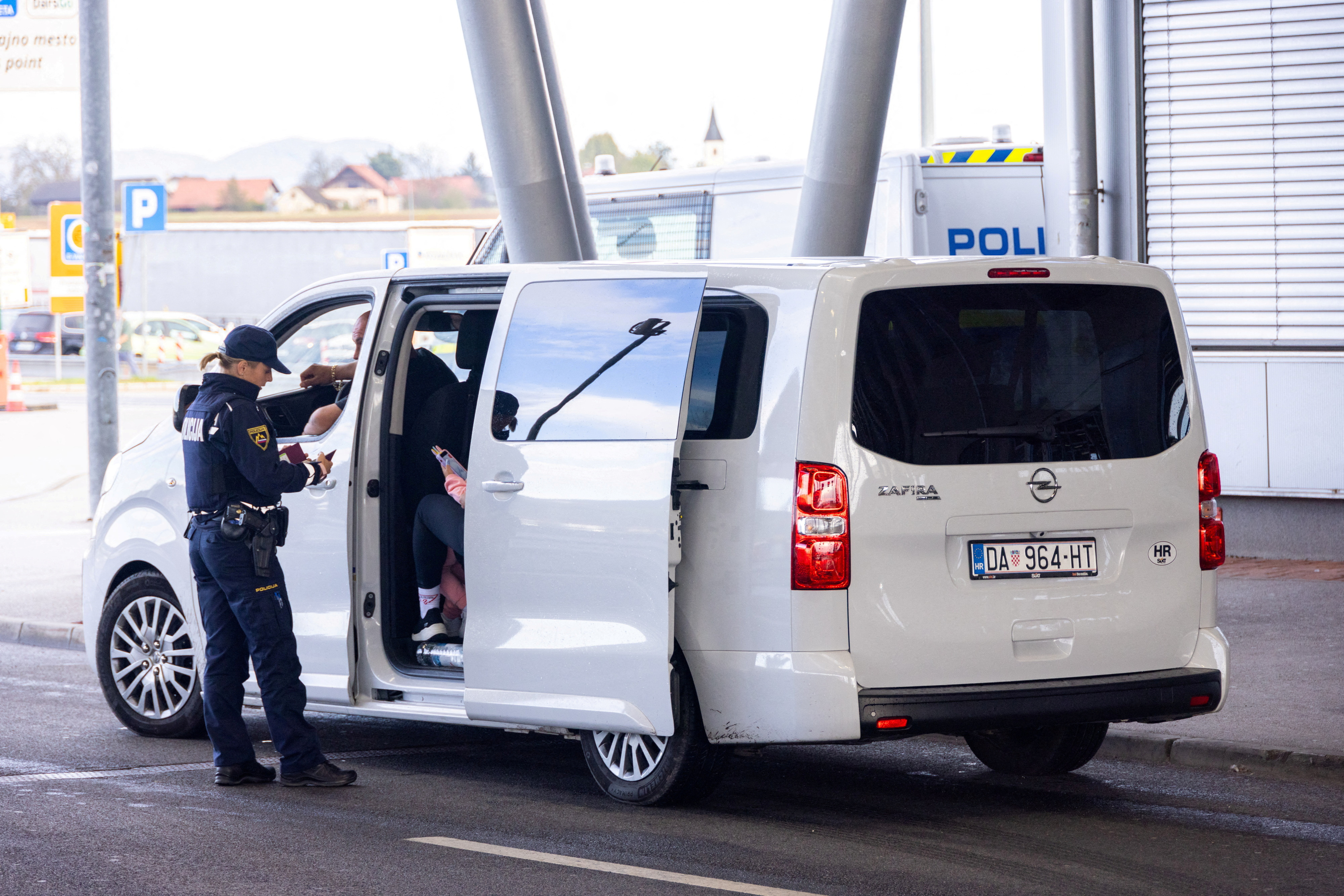 警察在斯洛文尼亚的奥布雷日边境口岸检查文件,2023年10月21日。路透社/Antonio Bronic