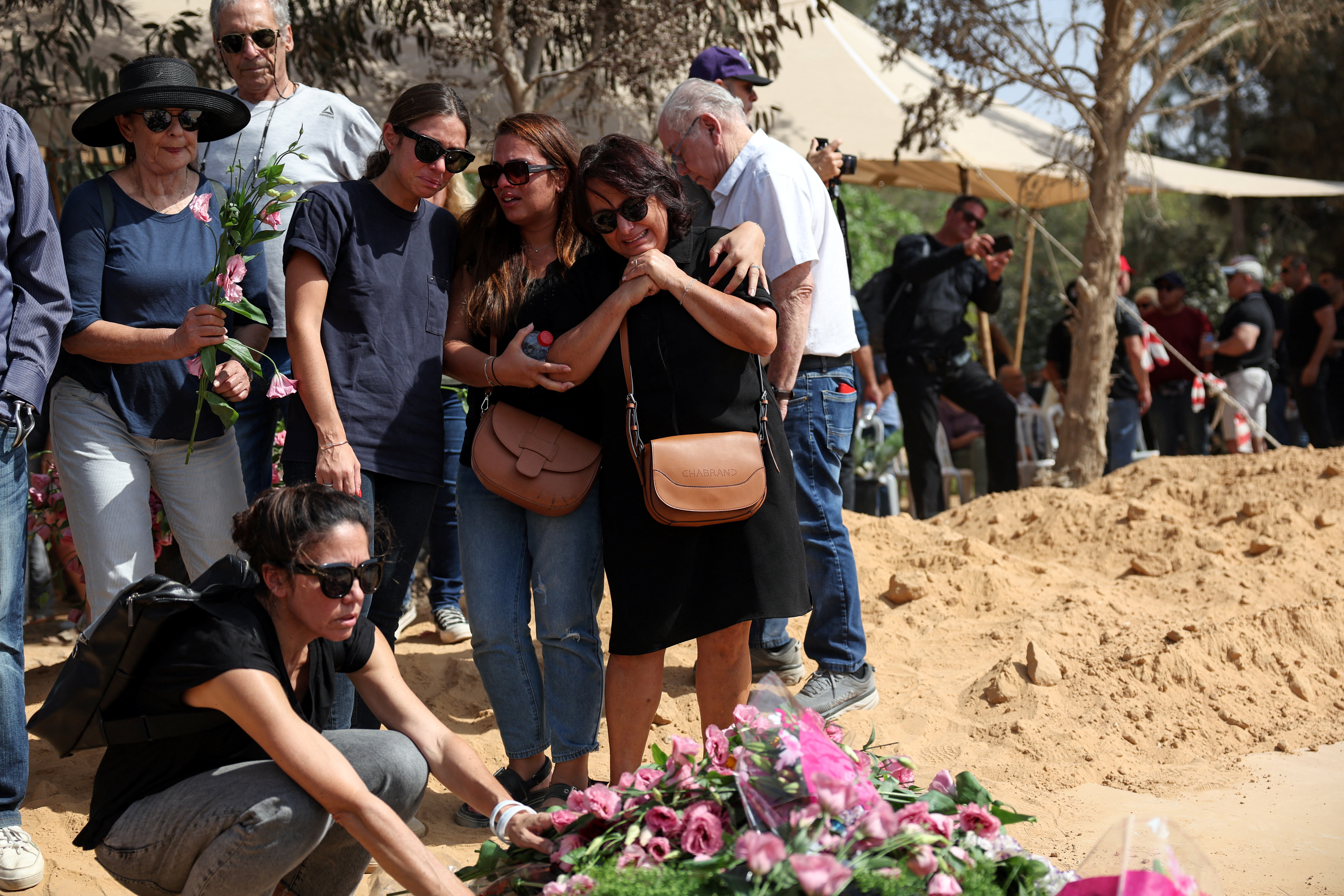 以色列国旗在以色列南部与加沙地带边界附近的一门自行火炮上飘扬,2023年10月22日。路透社/Violeta Santos Moura