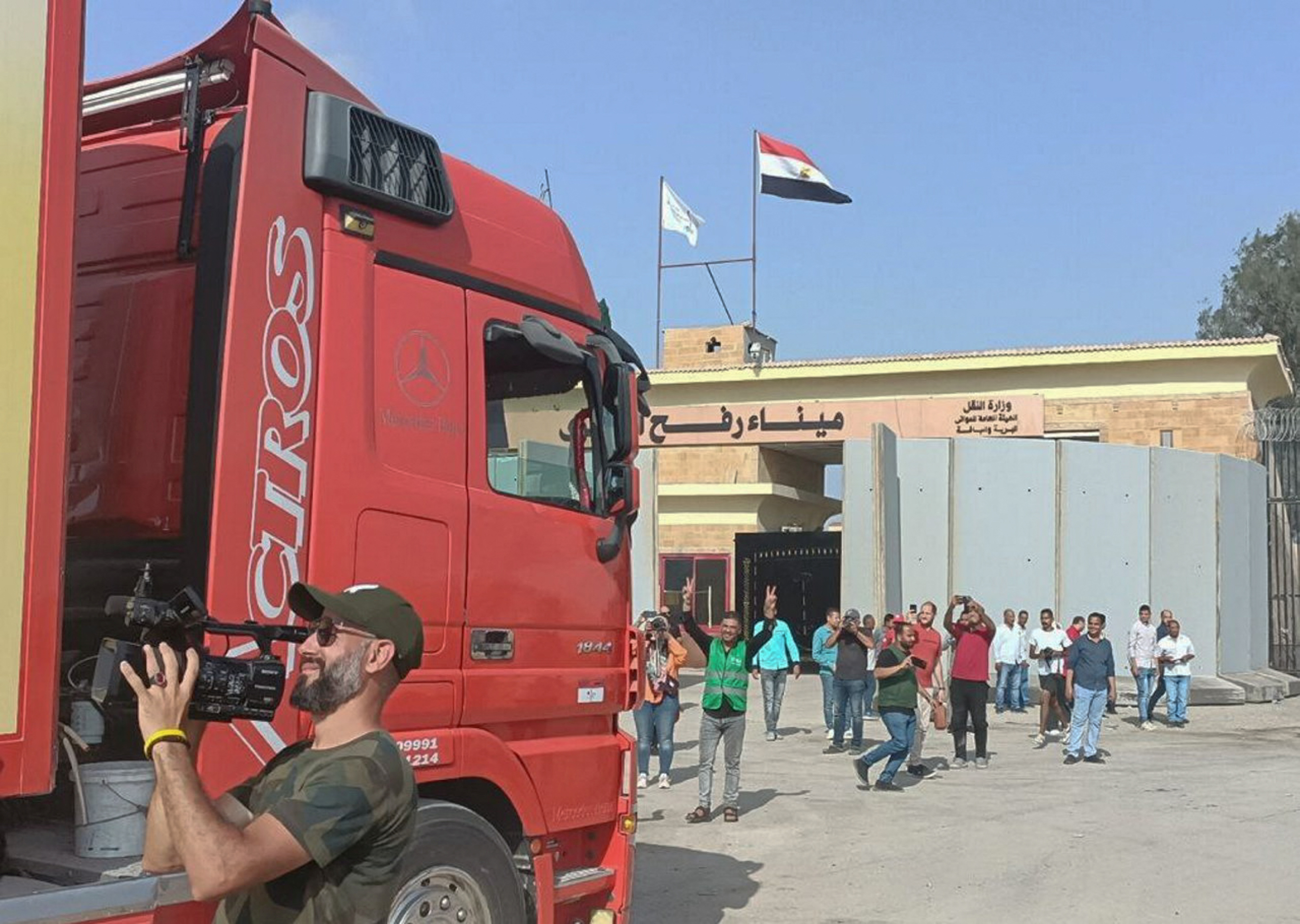 埃及安全和人道主义消息来源称,截至周日,有多达19辆卡车从边境埃及一侧进入,载有医疗和食品物资。目前尚不清楚是否有任何援助被滞留在边境。