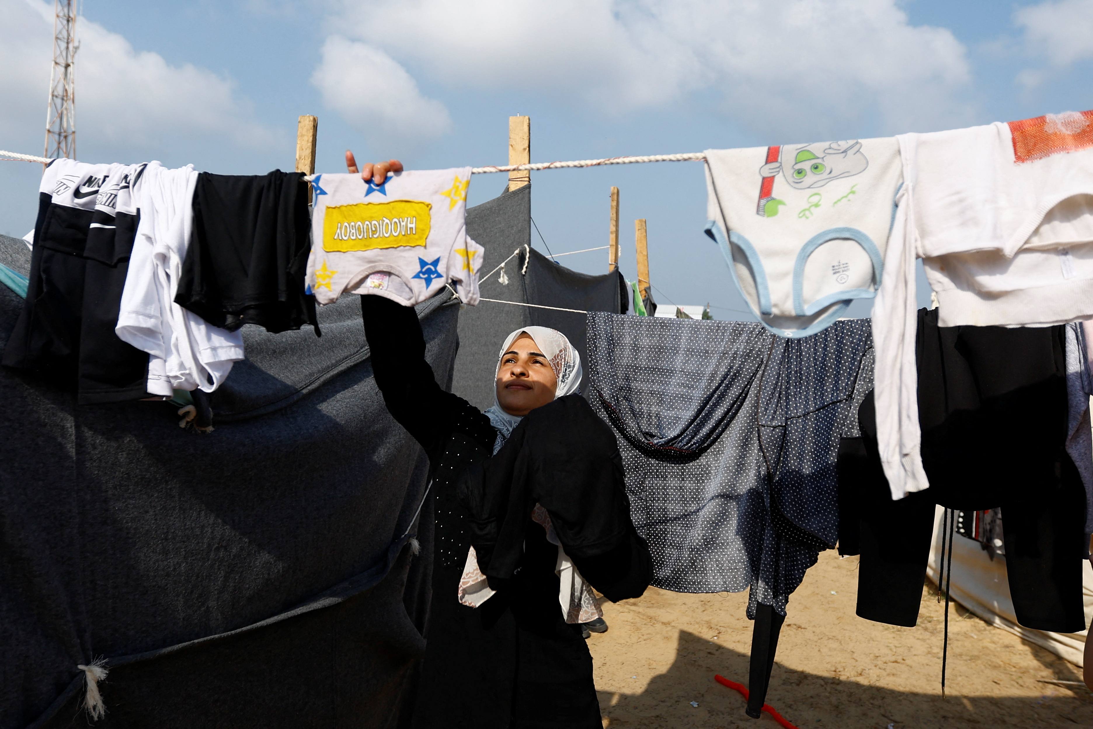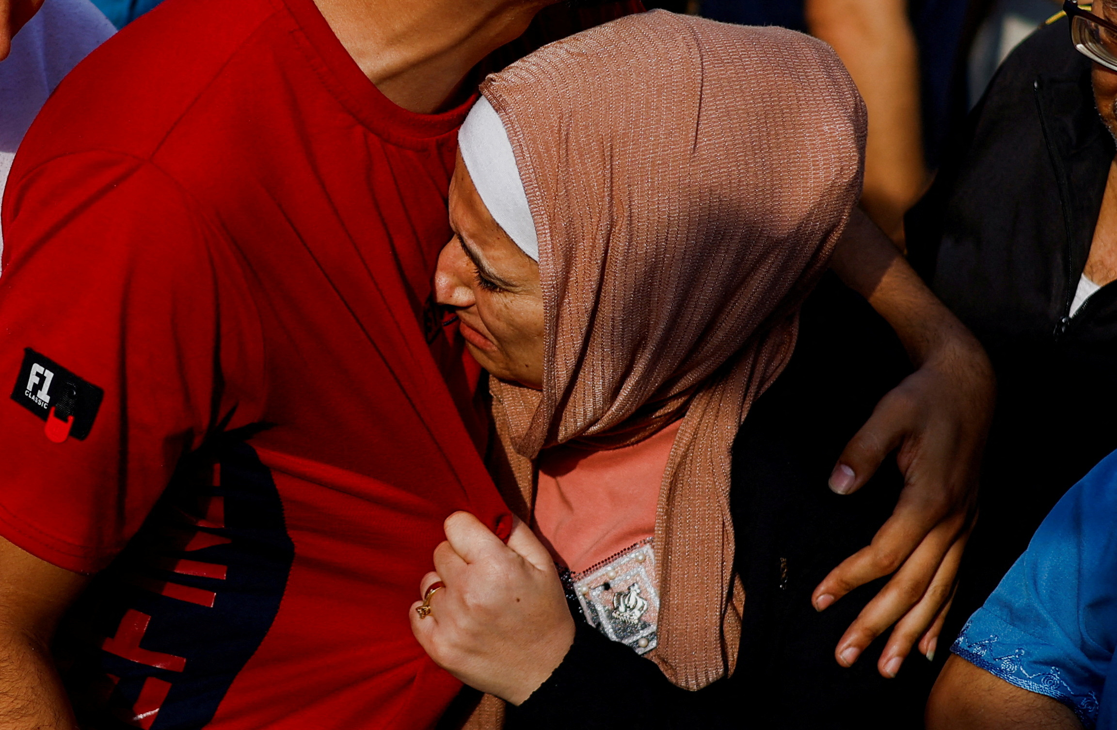 在加沙南部汗尤尼斯发生一次空袭后,阿卜杜拉·塔巴什抱着他已经去世的女儿西德拉,拒绝放手,他抱着她血迹斑斑的脸和头发。“我想尽可能多地看着她,”他说。