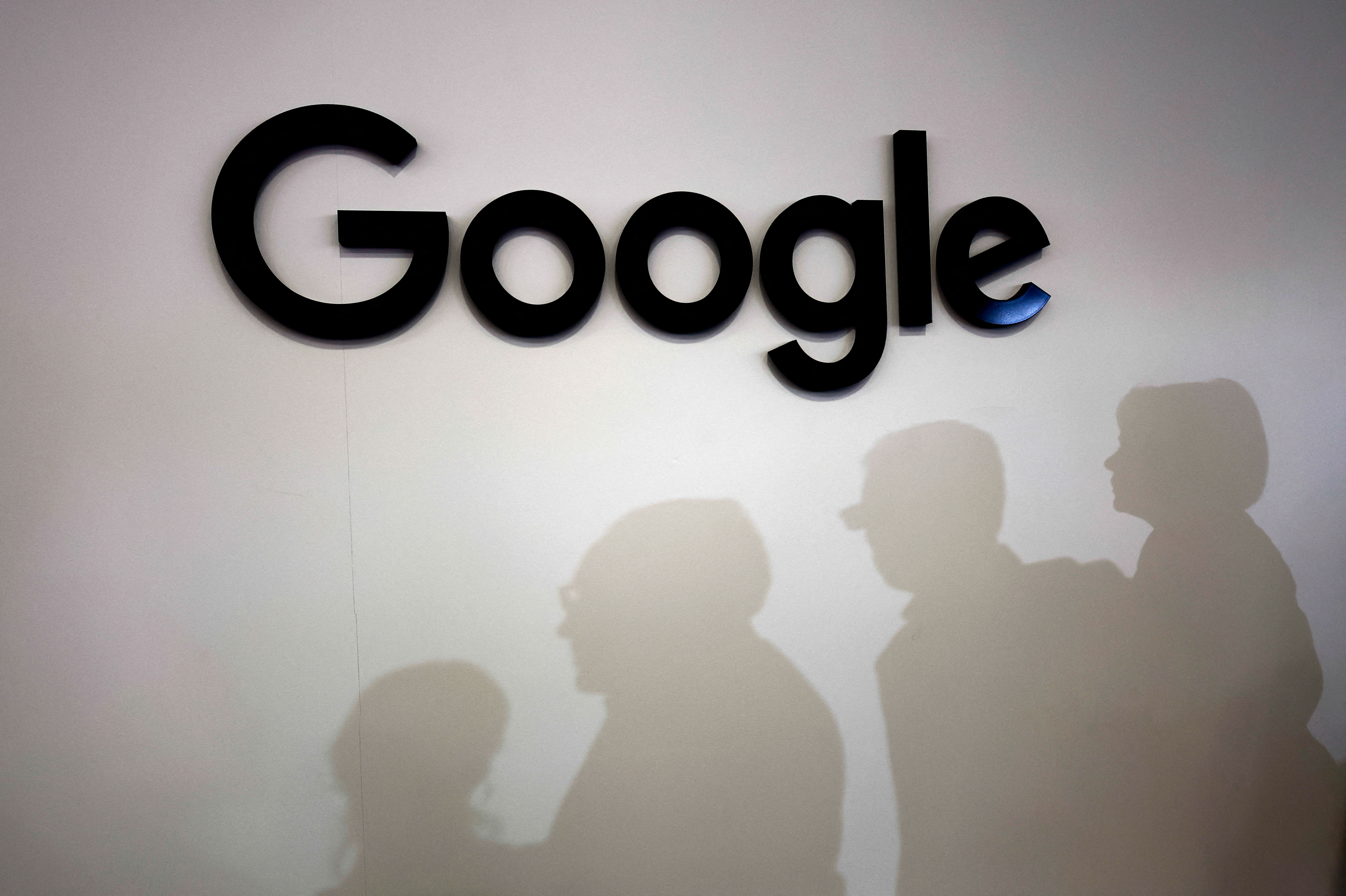 访客们在法国巴黎凡尔赛展览中心举行的Viva Technology创新和初创企业大会上投下了Google的标志的影子,2023年6月15日。路透社/冈萨洛·富恩特斯(Gonzalo Fuentes)