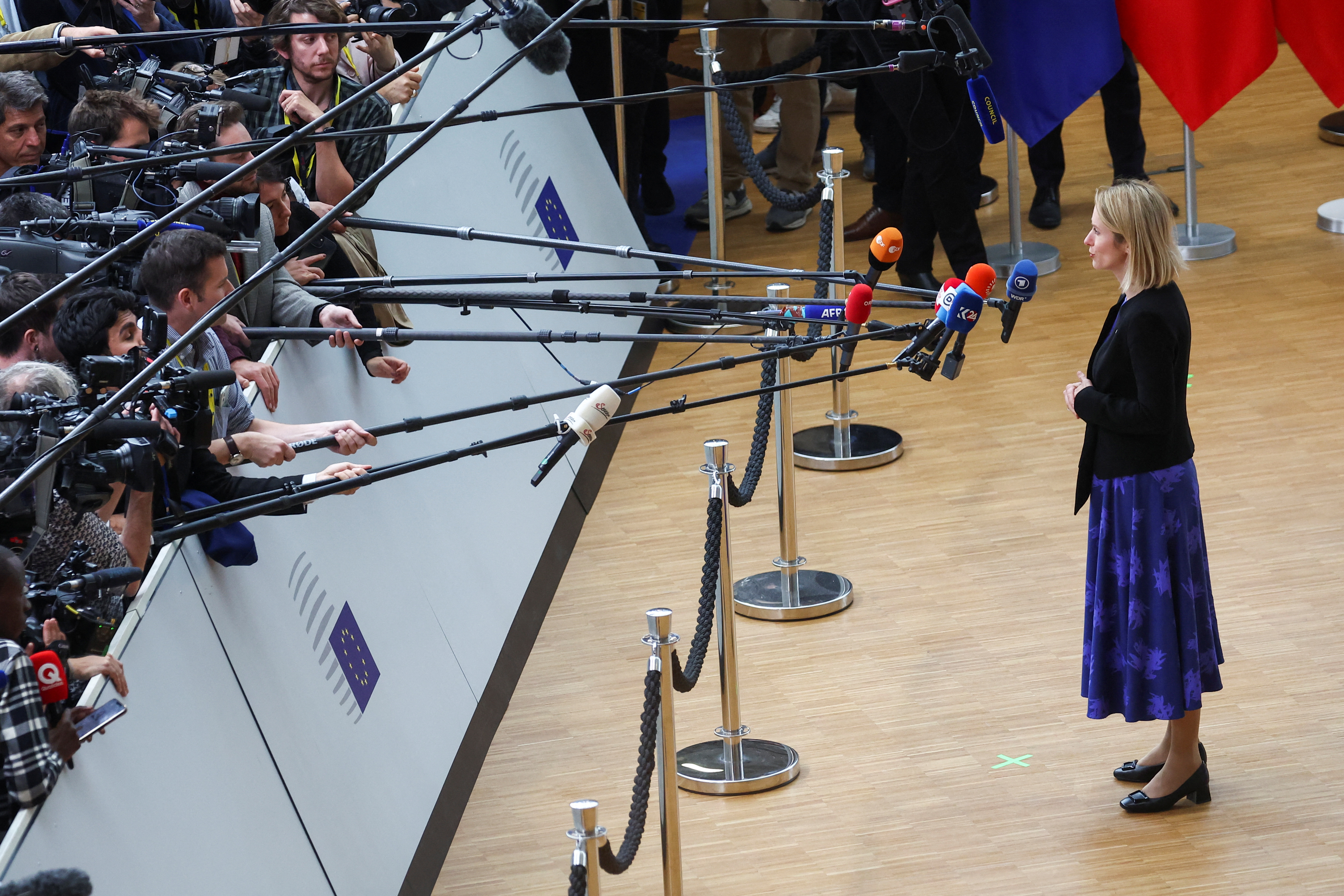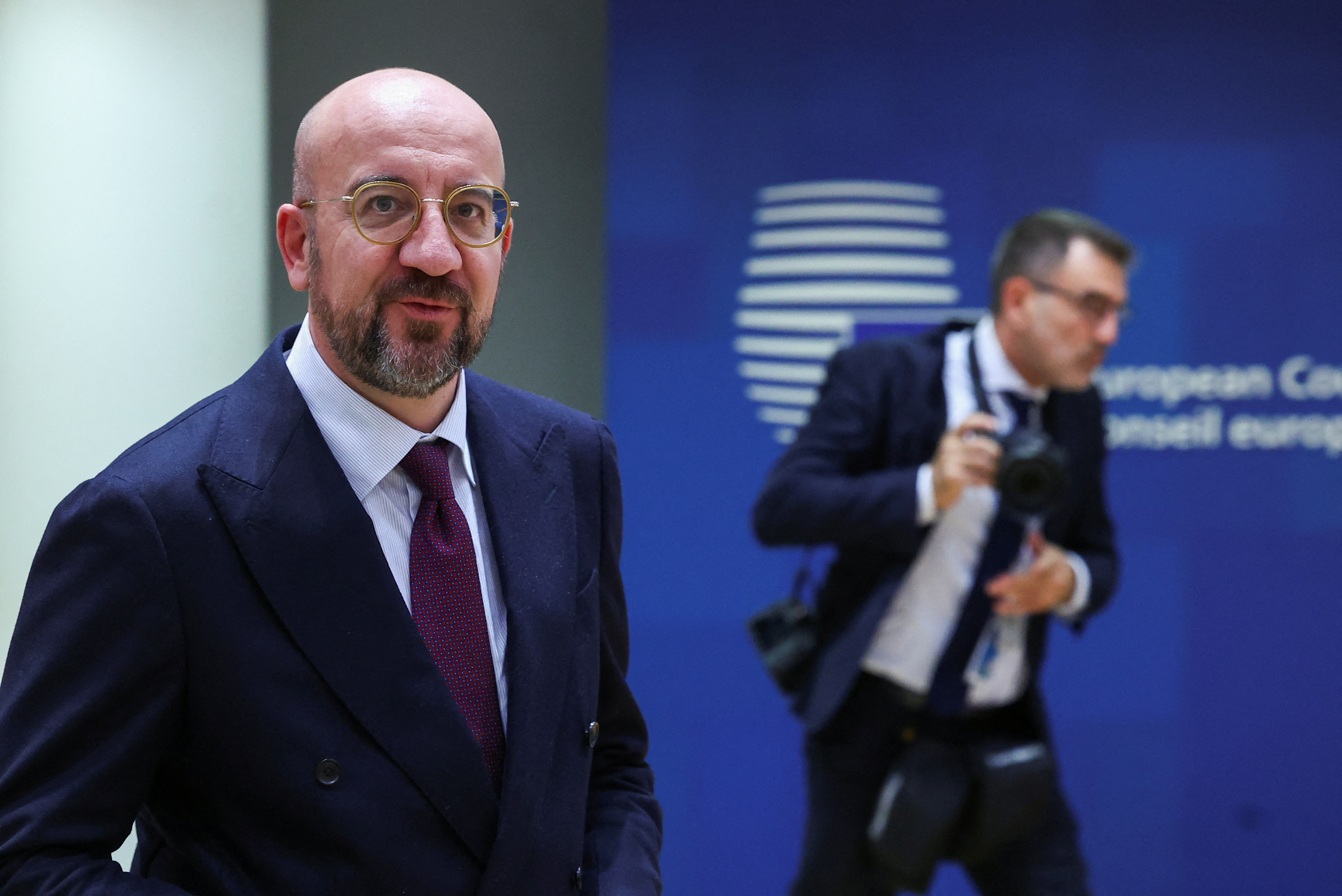 欧洲理事会成员在出席2023年10月26日在比利时布鲁塞尔举行的欧盟领导人峰会时发言。路透社/伊夫·赫尔曼摄