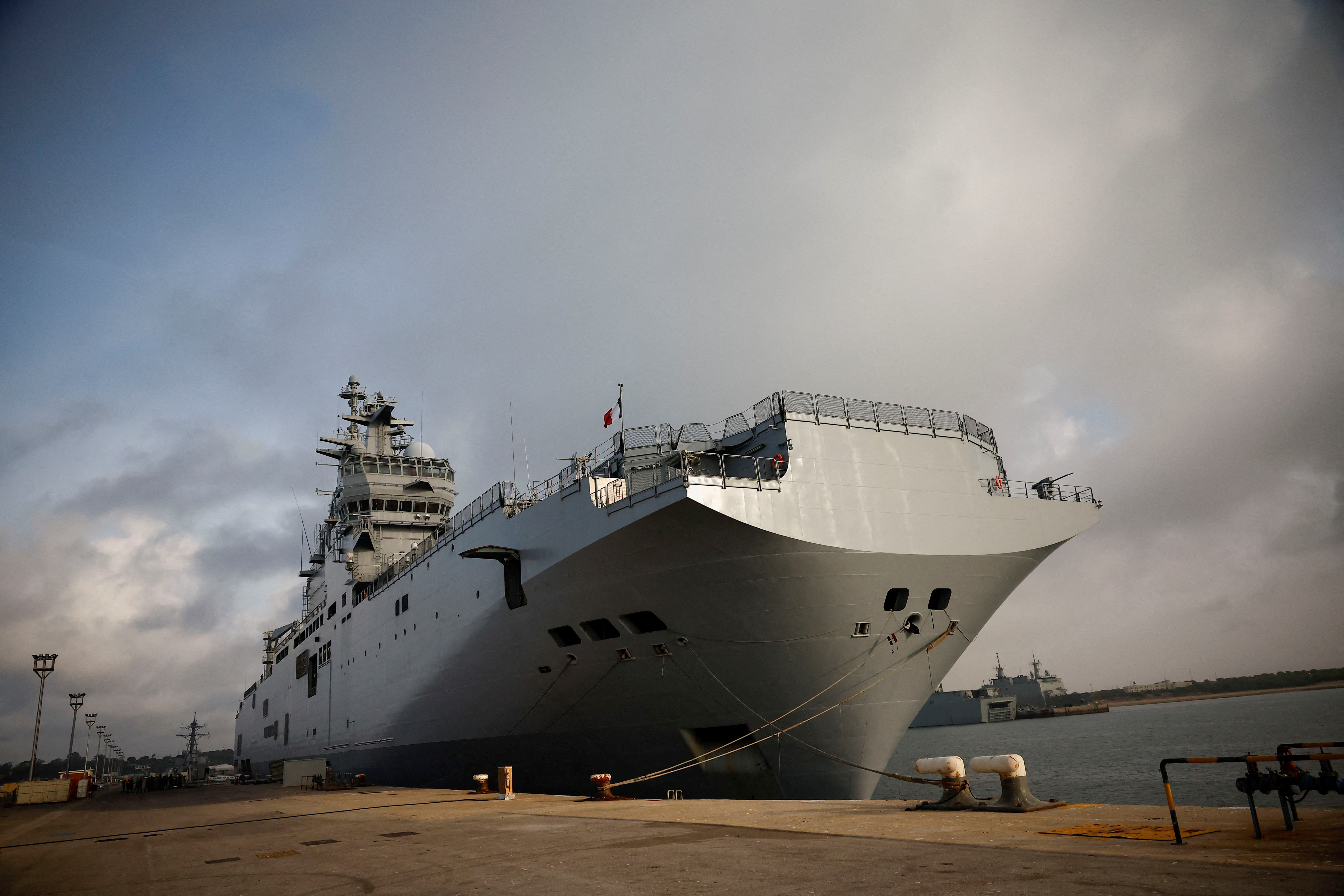 能够搭载军用直升机、坦克和两栖车辆,“托内尔"号还可以作为一艘拥有数十张病床、X光设备和两个手术室的浮动医院,根据法国国防部网站的说法。