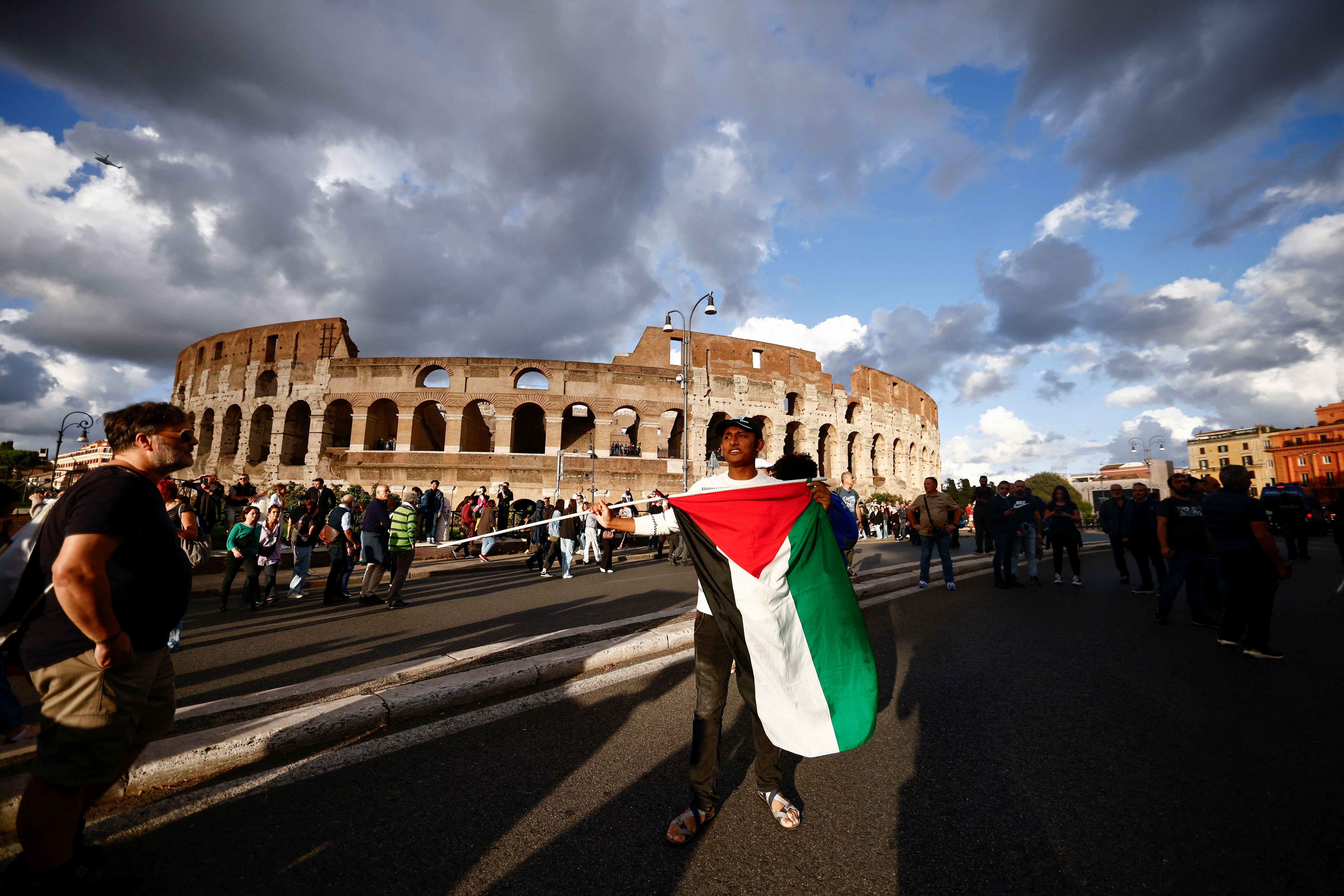 抗议者卡米尔·雷维尔塔说:“目前,扮演的超级大国还不够。这就是我们在这里的原因:我们呼吁停火,呼吁巴勒斯坦人的权利,生存权,生活权,人权,我们所有的权利。”