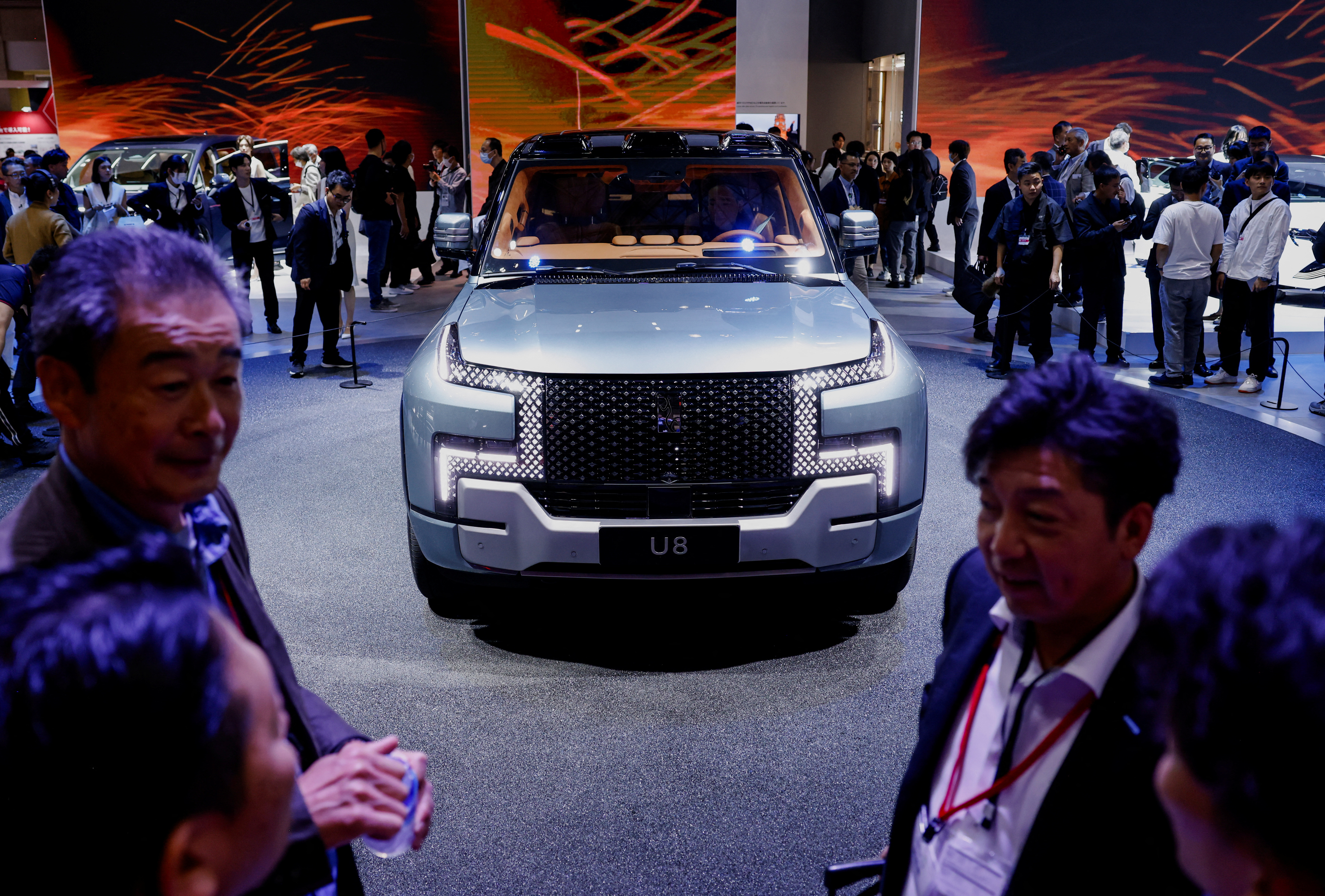 在东京日本大型展览会上,2023年10月25日,一辆比亚迪U8在展出。 路透社/加藤一生