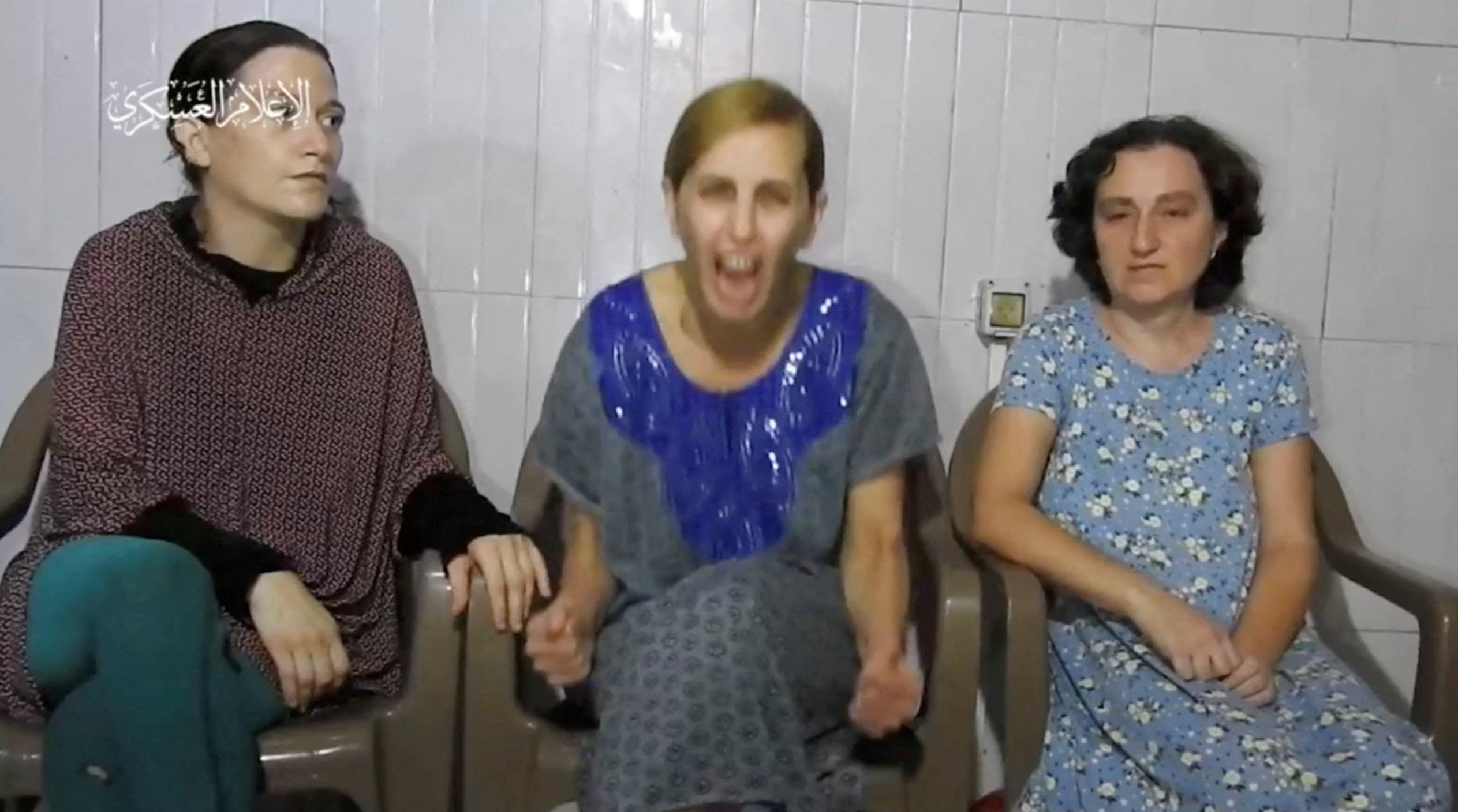 三名以色列妇女被以色列总理本雅明·内塔尼亚胡确认为叶莲娜·特鲁帕诺布、丹妮尔·阿洛尼和里蒙·基尔什特,她们于10月7日被伊斯兰哈马斯组织从以色列家中绑架后被关押在加沙,这是路透社获得的一段手稿视频截图中的情况… 阅读更多