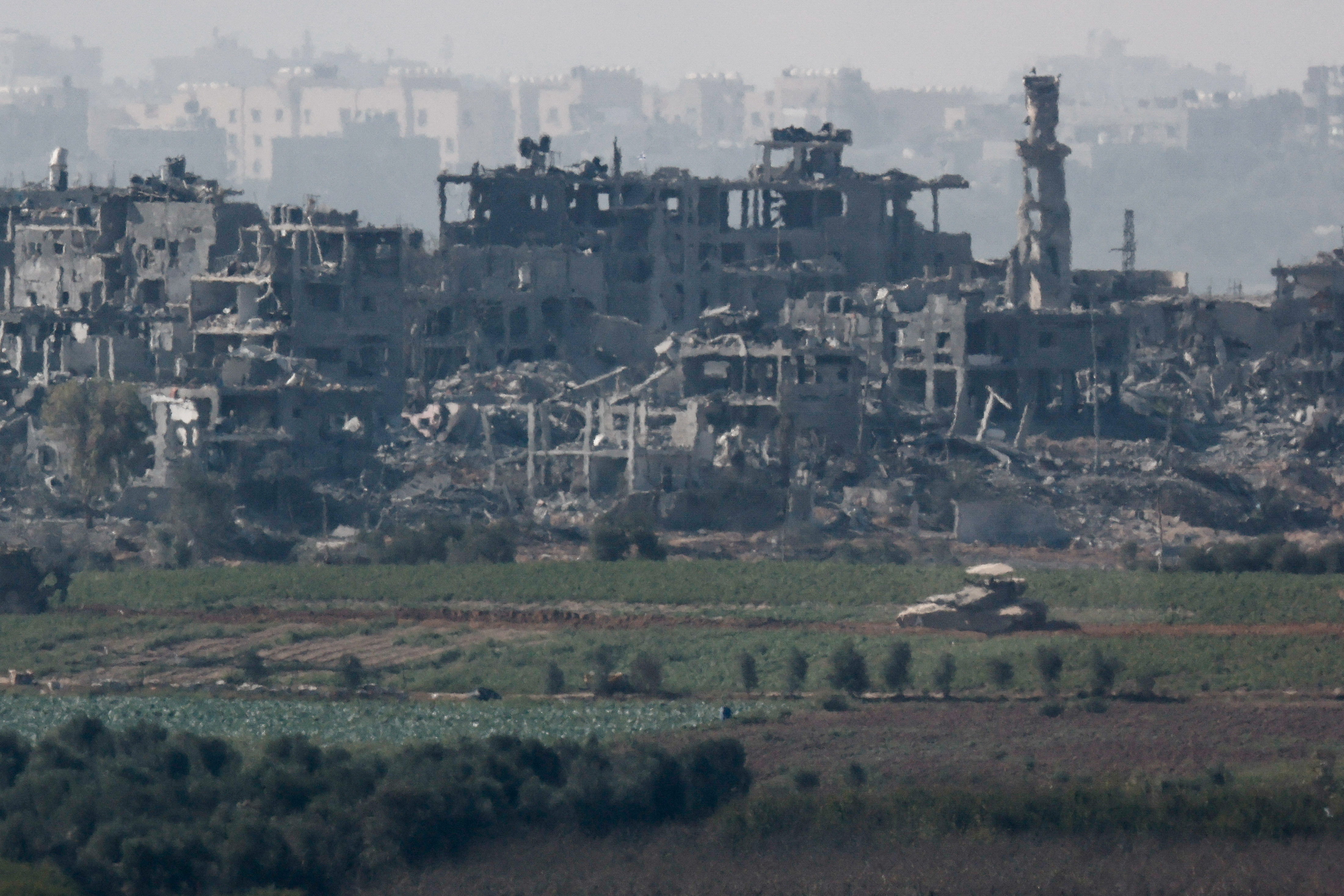 一辆坦克在加沙地带内机动,从以色列城市斯德洛特望去,2023年11月6日。路透社/Amir Cohen