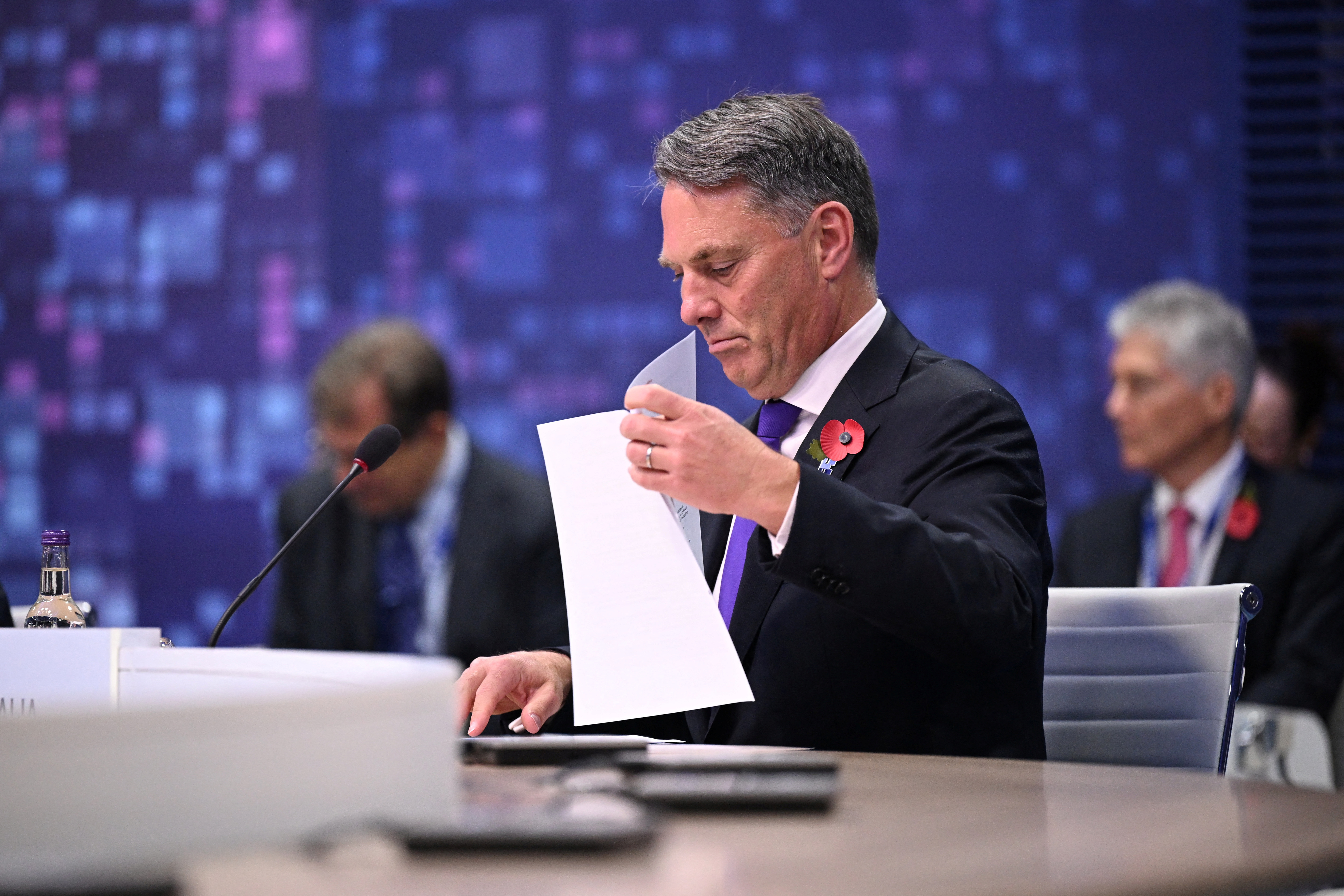 澳大利亚副总理兼国防部长理查德·马尔斯出席了英国布莱切利公园举行的第二天英国人工智能(AI)安全峰会,时间为2023年11月2日。利昂·尼尔/路透社/文件照片