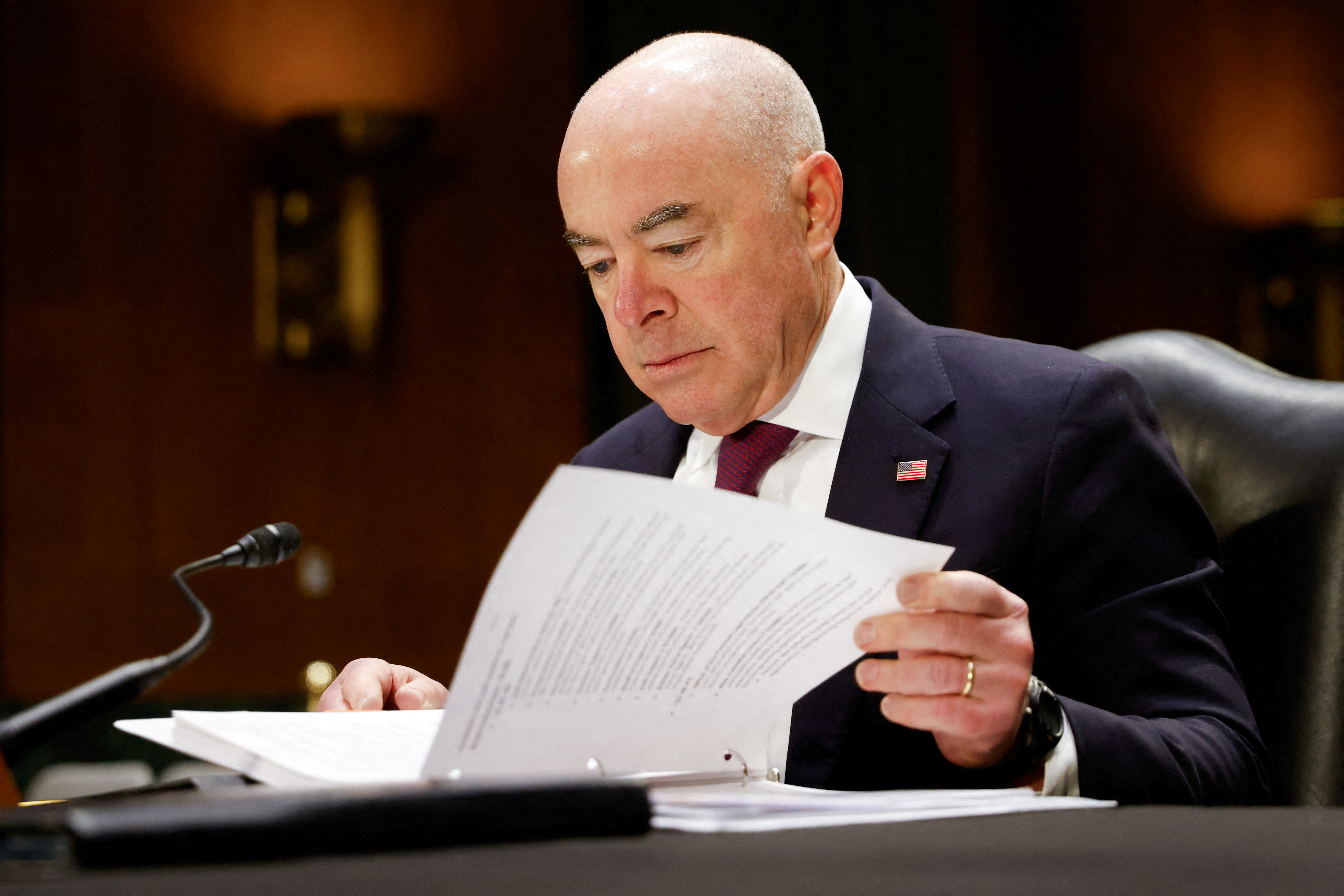 美国国土安全部部长亚历杭德罗·马约尔卡斯(Alejandro Mayorkas)抵达参议院拨款委员会作证,美国国会议员们正在努力达成协议,以避免不到两周后即将到来的国会部分停摆,地点在华盛顿国会山,2023年11月8日,美国。路透社/朱莉娅·尼克辛森/文件… 阅读更多