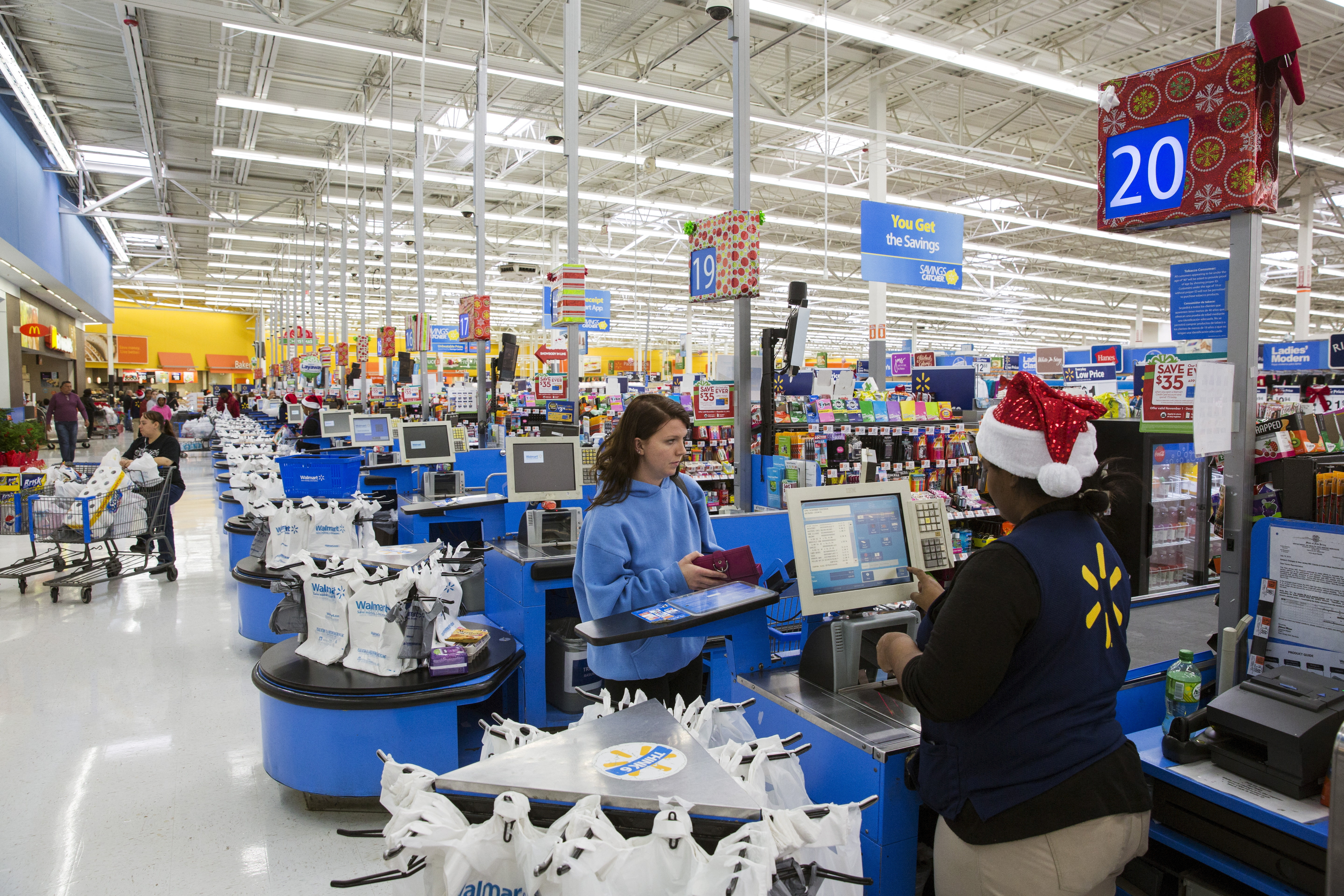 一名购物者在新泽西州塞考克斯的沃尔玛商店结账,2015年11月11日。路透社/卢卡斯·杰克逊/文件照片