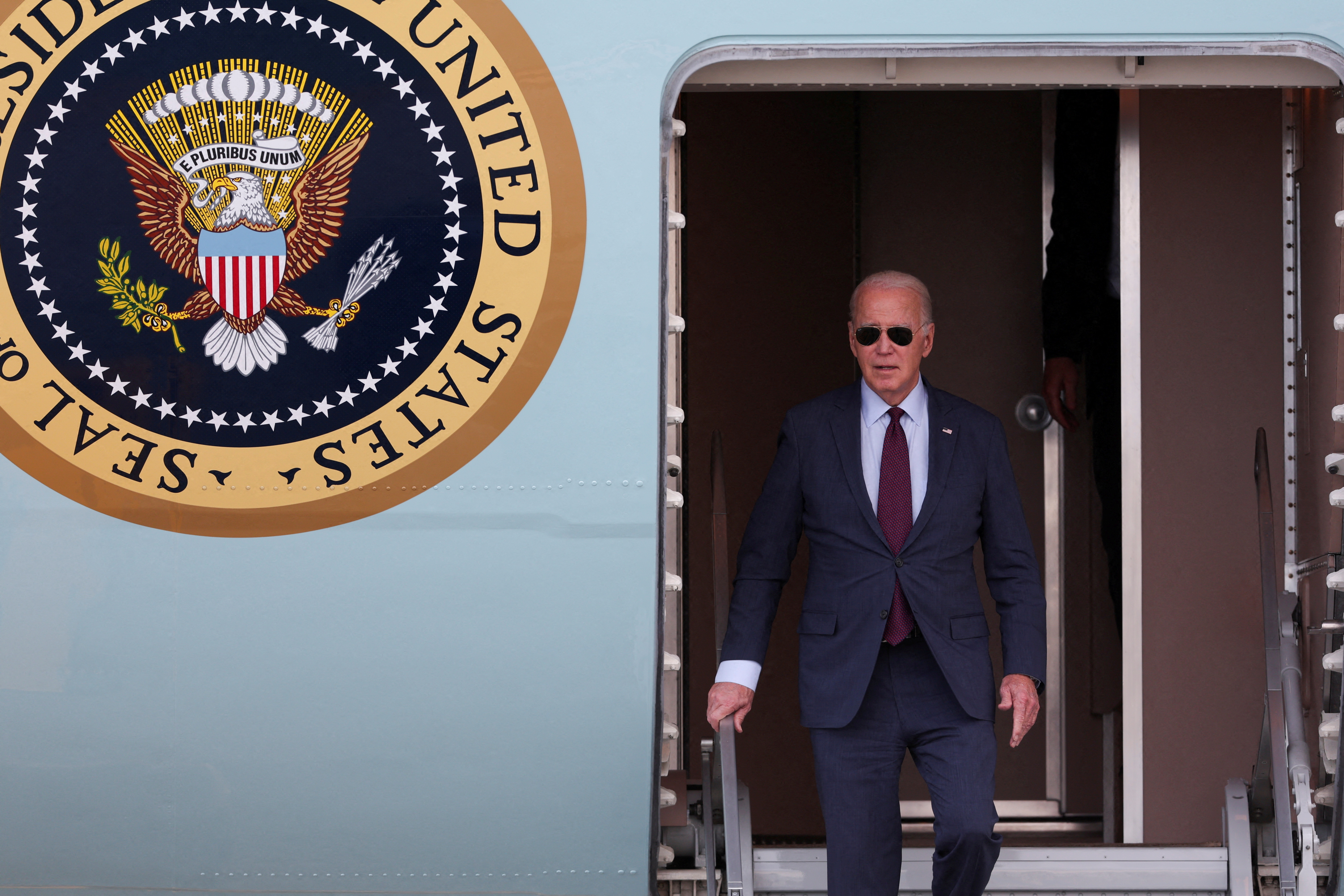 美国总统乔·拜登(Joe Biden)于2023年11月14日抵达旧金山国际机场,参加在美国加利福尼亚州旧金山举行的亚太经济合作组织(APEC)峰会。路透社/布列塔尼·霍西亚-斯莫尔/文件照片