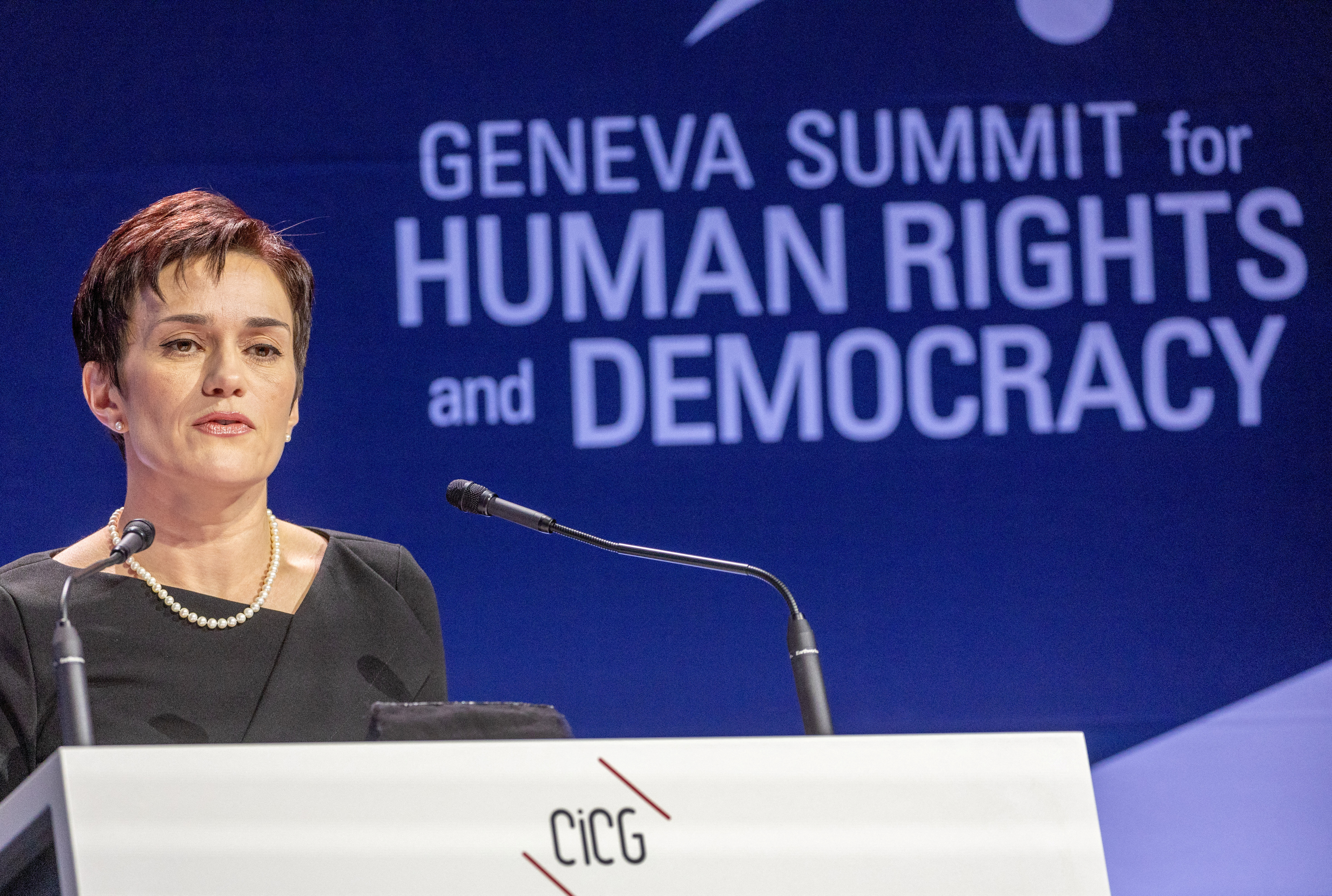 叶甫盖尼娅·卡拉-穆尔扎是被监禁的俄罗斯反对派人物弗拉基米尔·卡拉-穆尔扎的妻子,她在2023年5月17日在瑞士日内瓦出席了日内瓦人权与民主峰会。路透社/丹尼斯·巴利布斯/文件照片