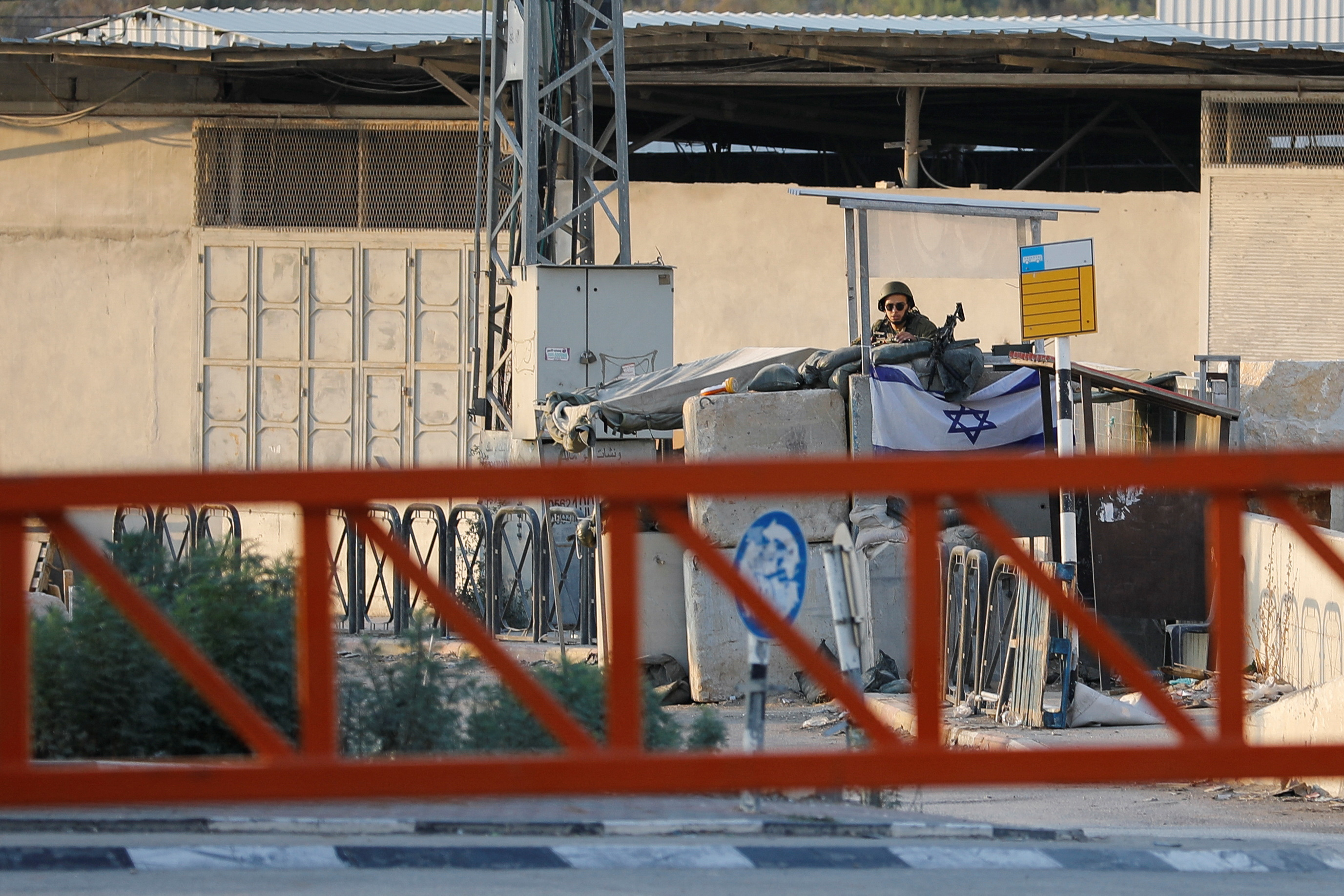 以色列军队在2023年11月2日,巴勒斯坦被以色列占领的约旦河西岸的尼布鲁斯附近,犹太定居者袭击后站岗。路透社/拉宁·萨瓦夫塔