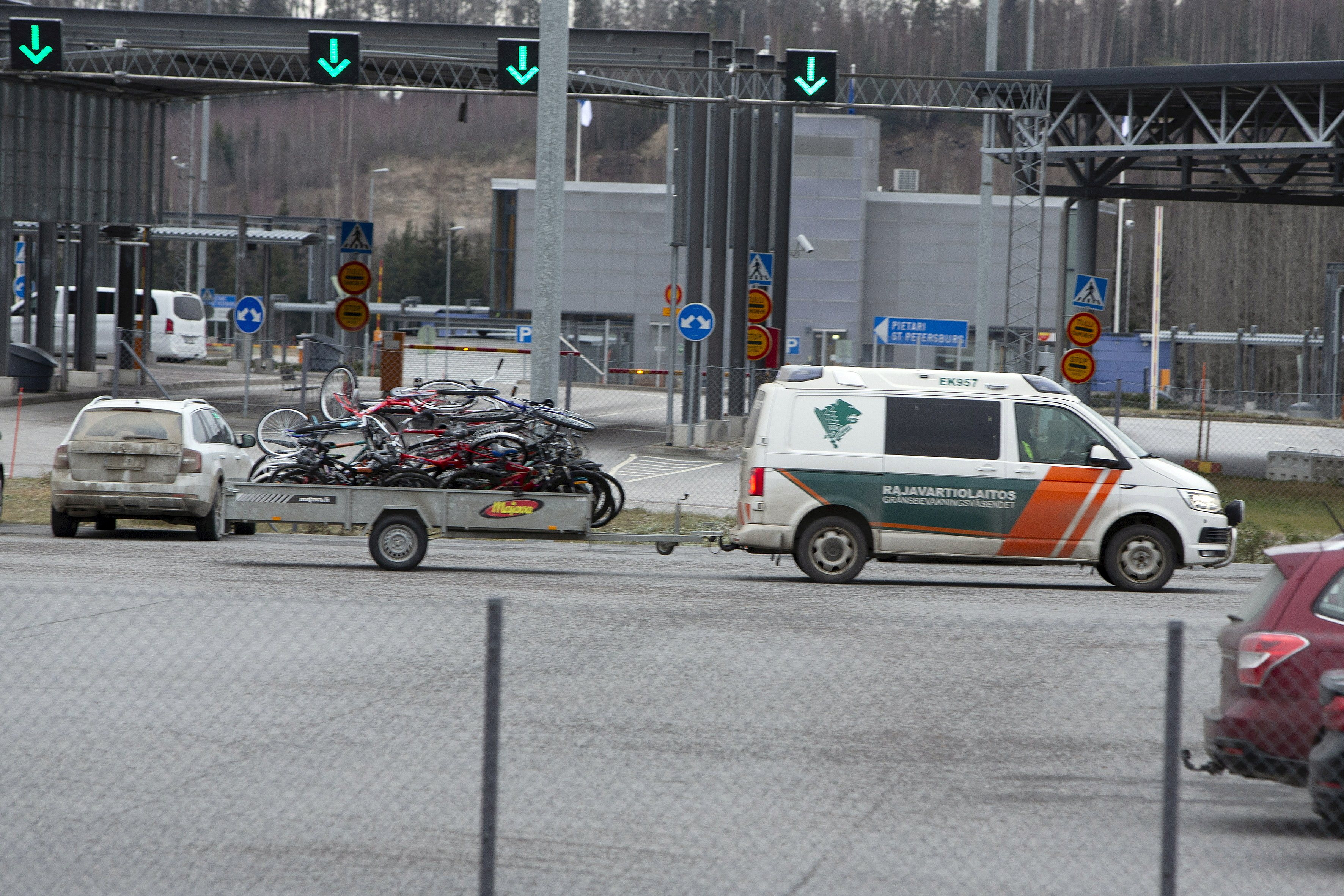 边境警卫车辆将寻求庇护者使用的自行车移动到芬兰边境的扣押仓库,此前芬兰关闭了其东部边境的四个东南部边境口岸,以应对俄罗斯决定允许无证寻求庇护者越境人数不断增加的情况,位于Nuijamaa边境… 阅读更多