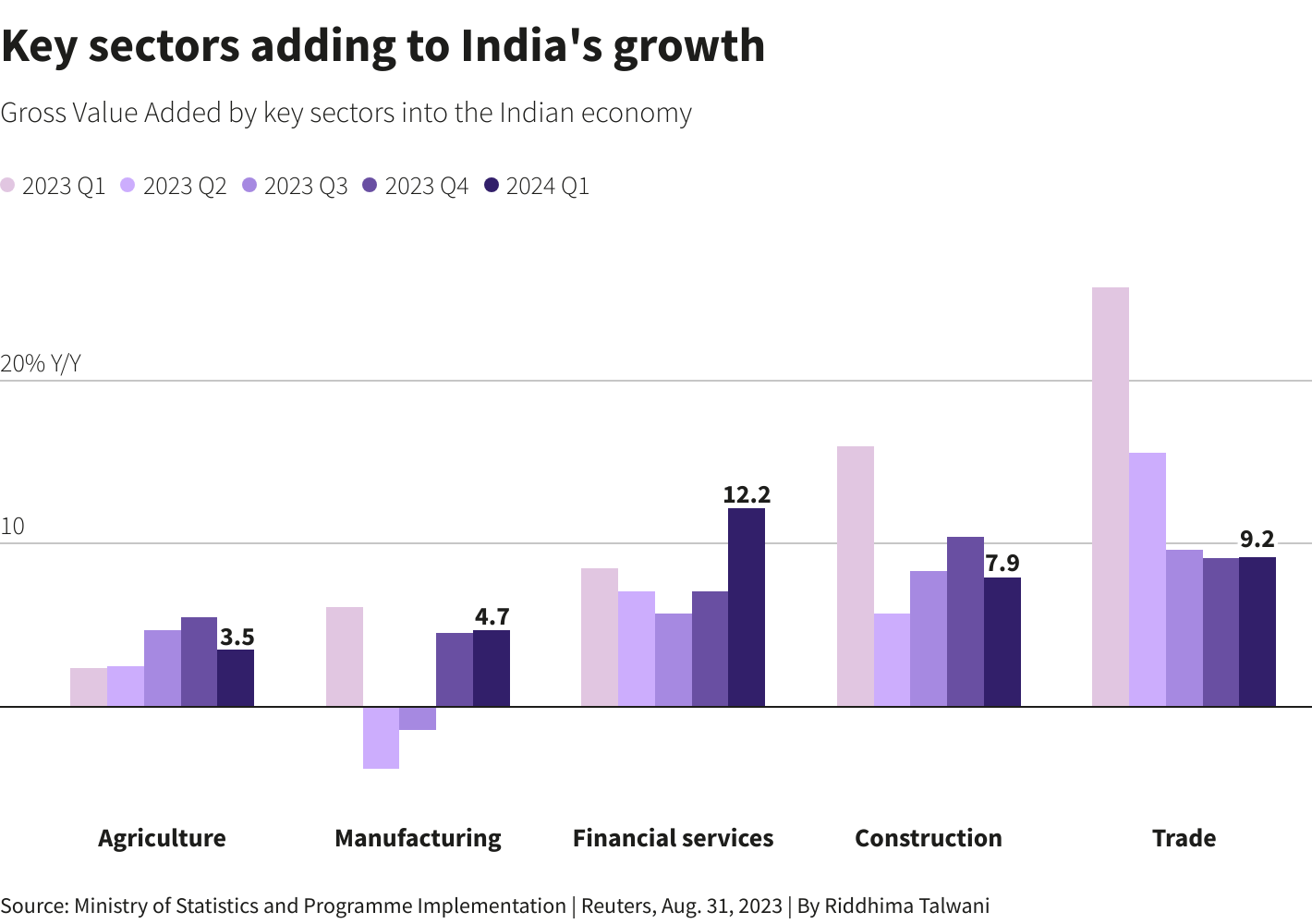 印度经济增长速度超出预期,制造业和政府支出起到了作用 | 路透社