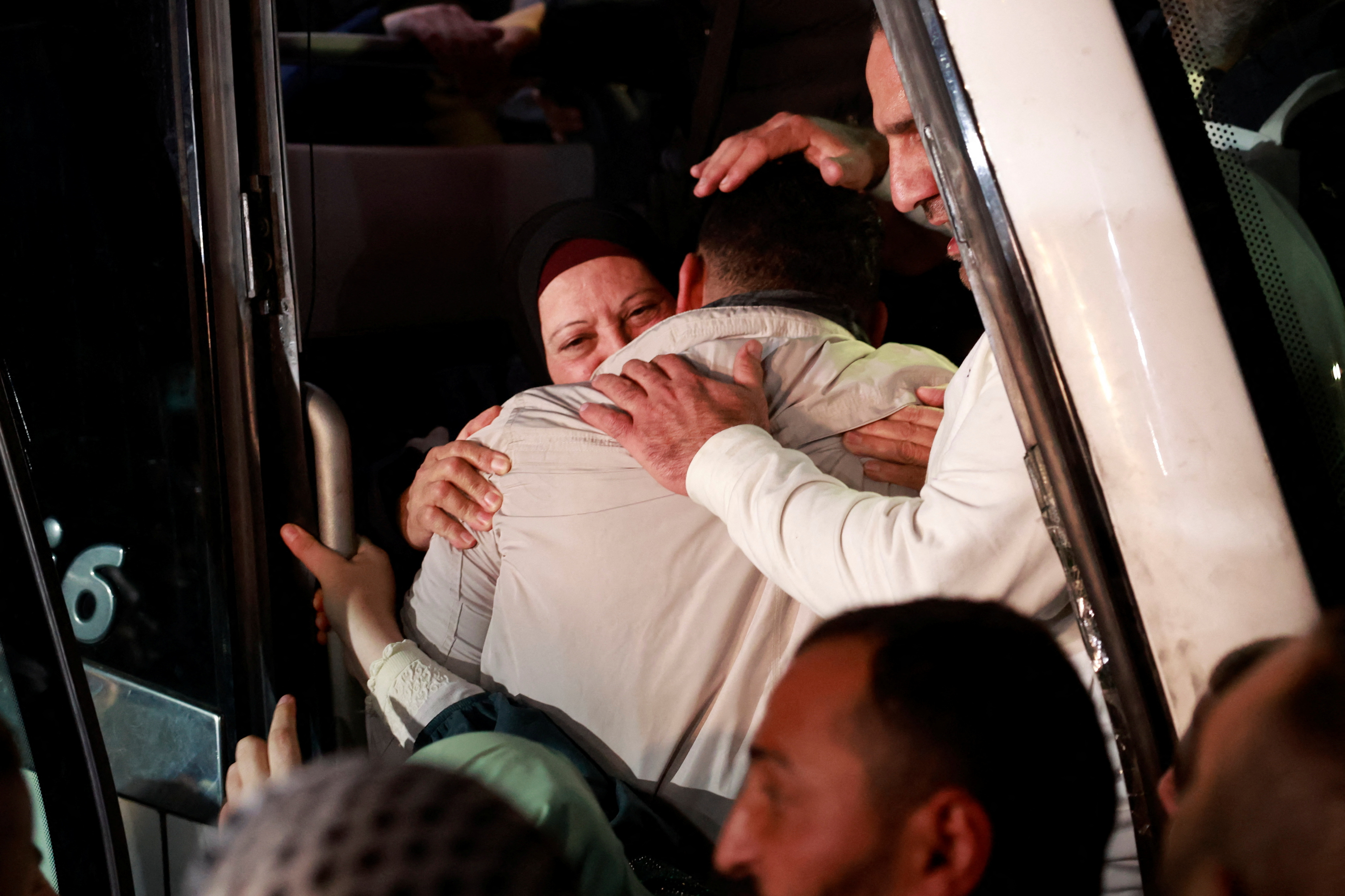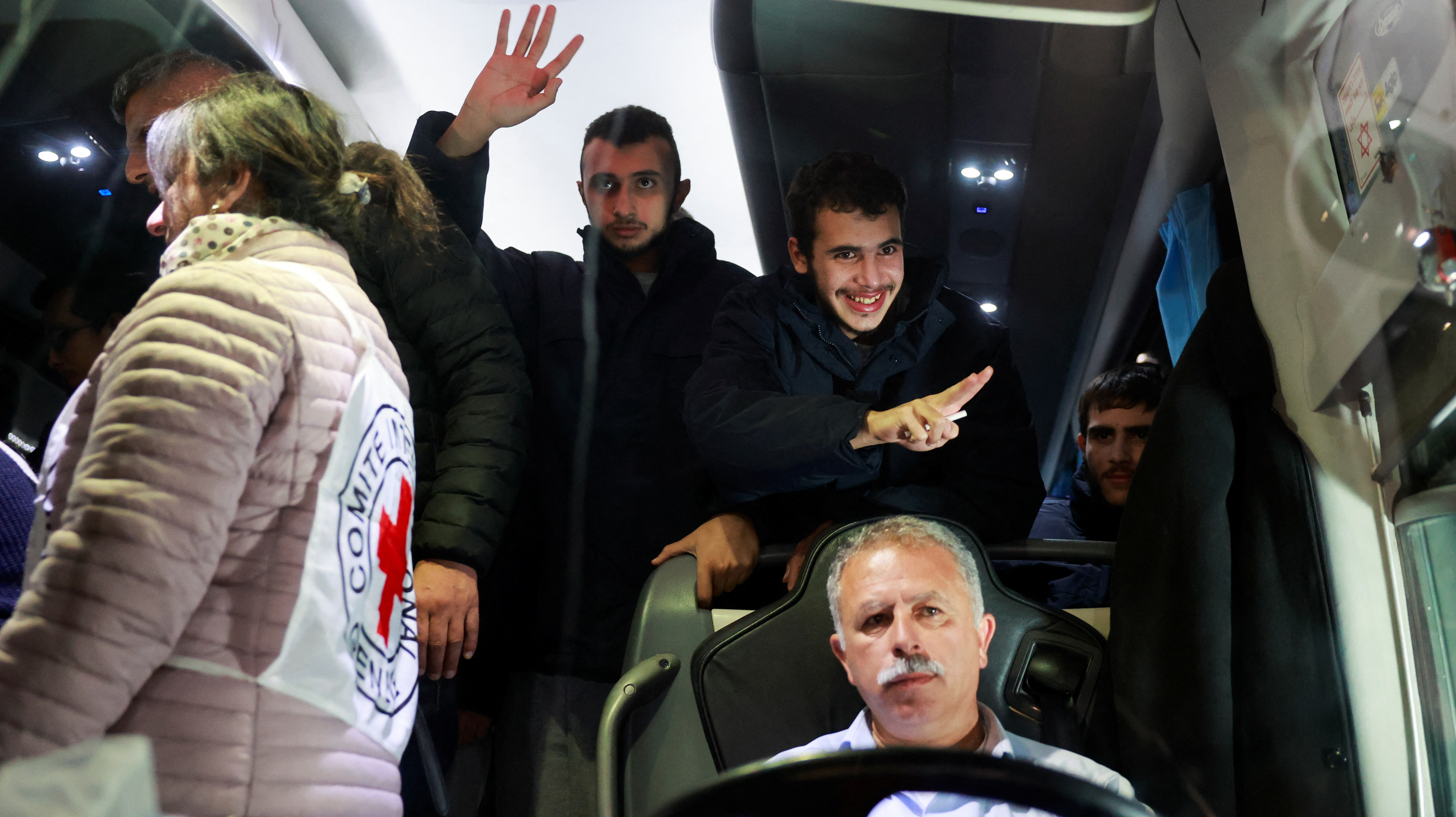在10月7日对以色列的袭击中被哈马斯武装分子绑架的人质在国际红十字会成员的护送下,进行了哈马斯和以色列之间的人质交换协议,这是在加沙地带一个未知地点的临时停火期间进行的,时间是2023年11月30日。哈马斯… 阅读更多