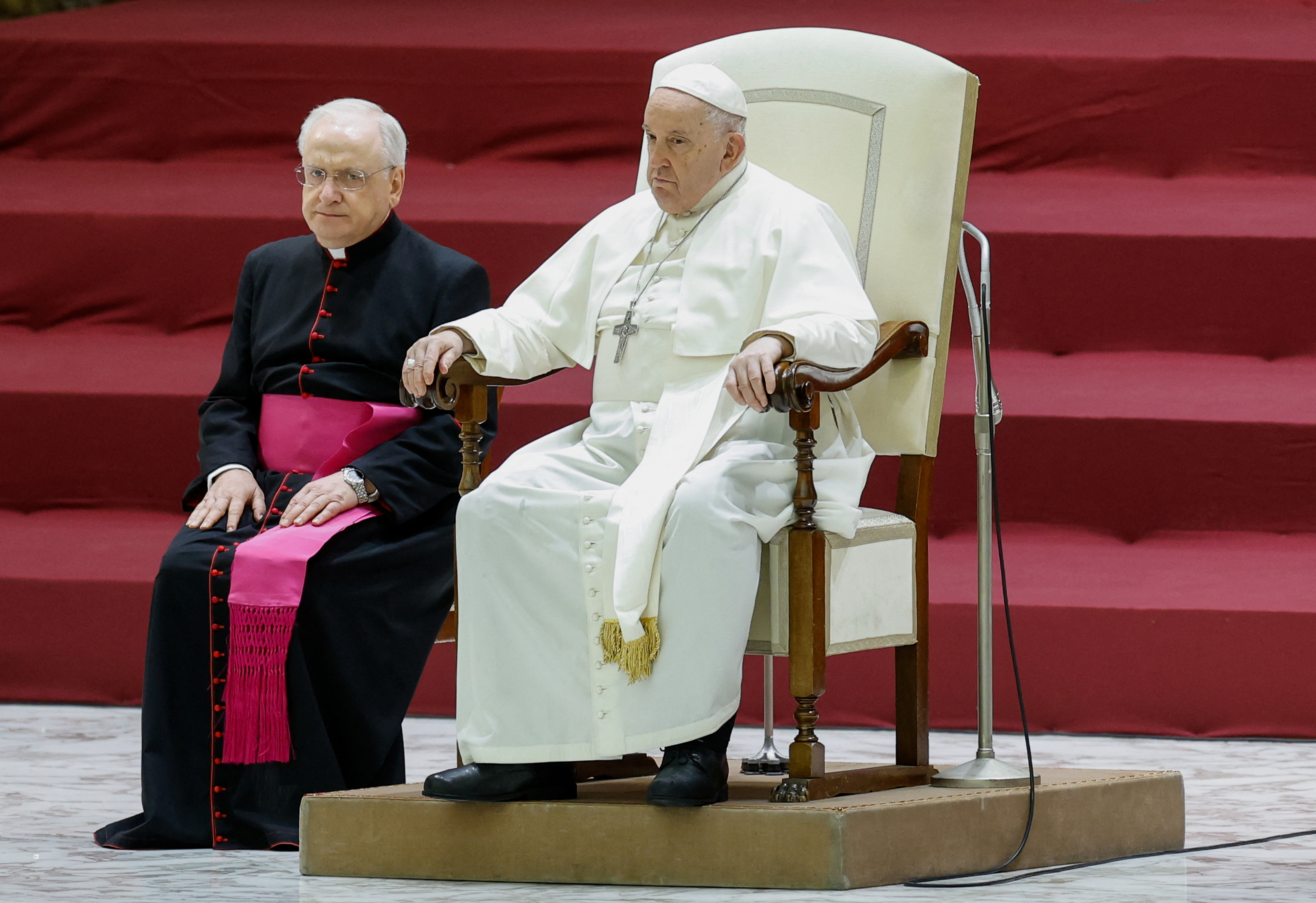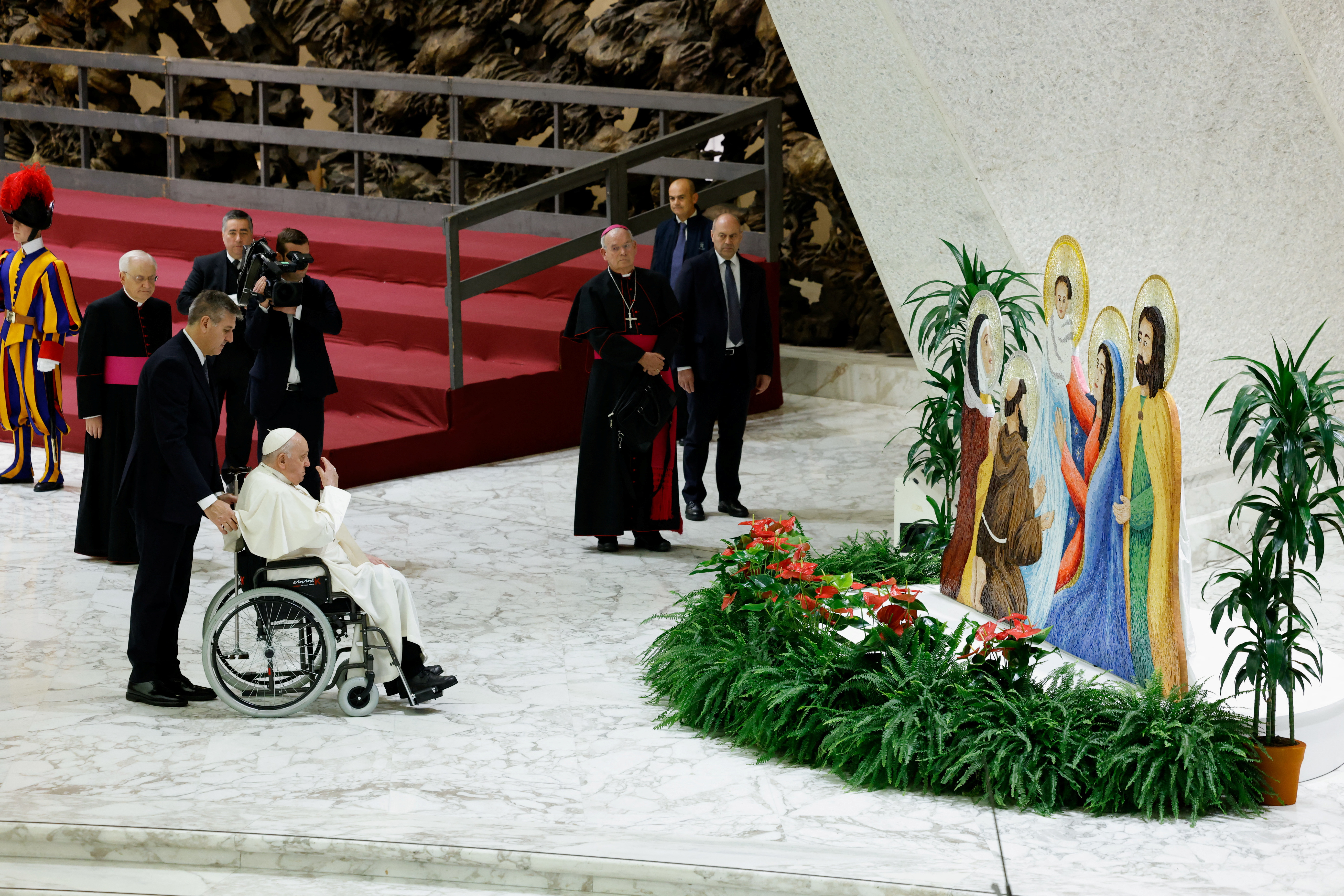 教宗方济各在梵蒂冈举行每周例行接见,2023年12月13日。梵蒂冈媒体/路透社/文件照片