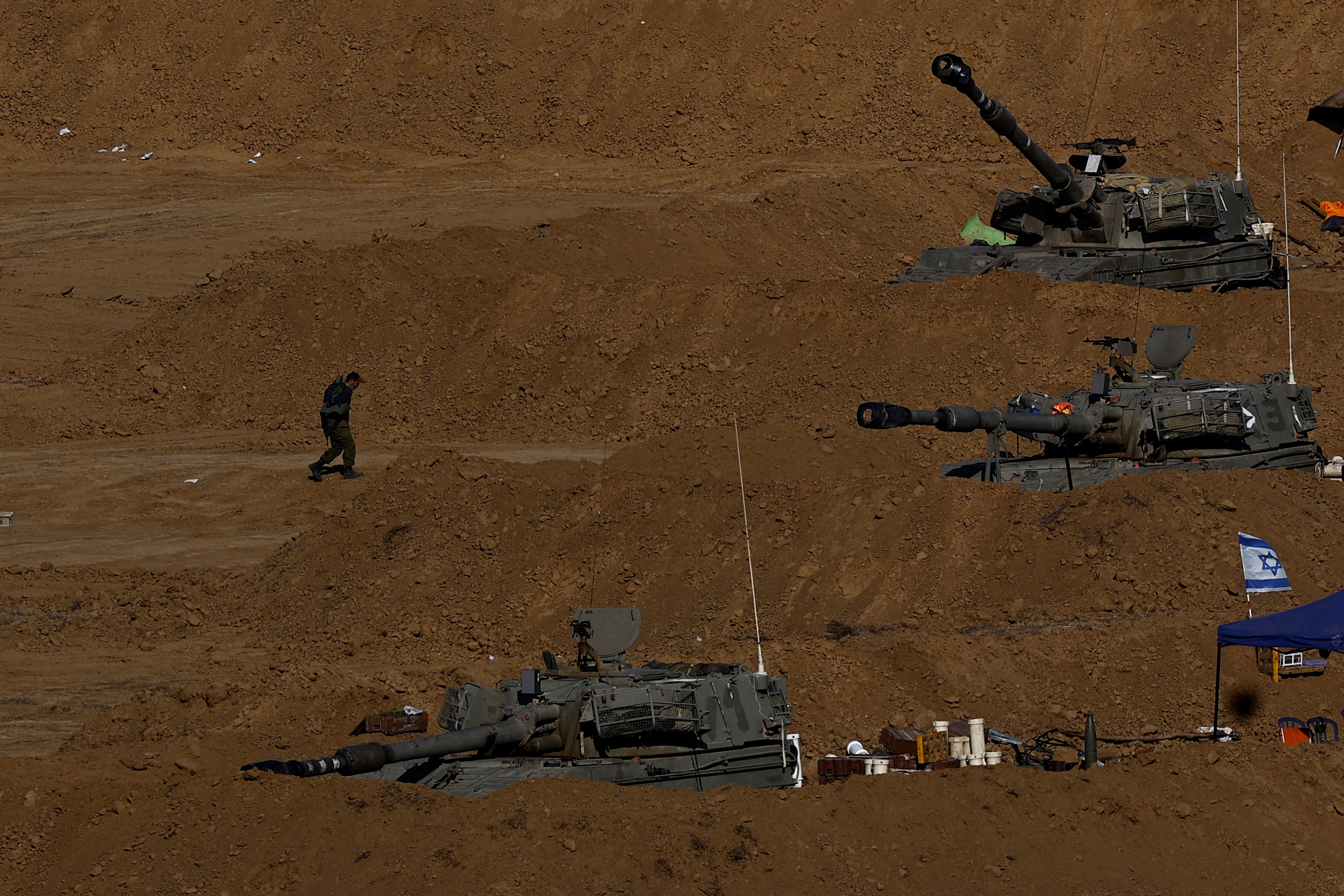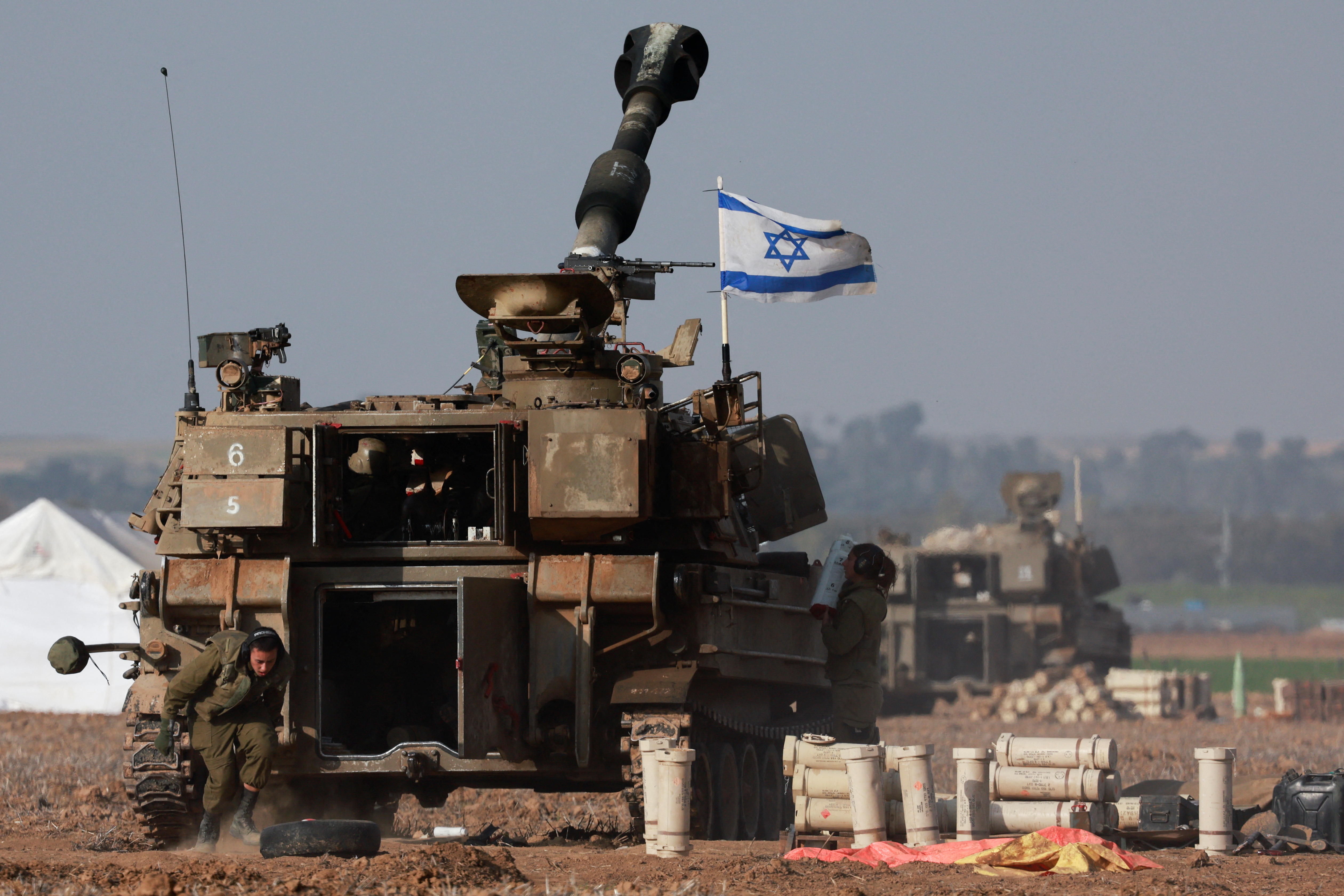 以色列炮兵部队在加沙边境附近执行任务,此时正值以色列和巴勒斯坦伊斯兰组织哈马斯之间的冲突持续进行,图片拍摄于2023年12月12日,以色列南部。路透社/阿玛尔·阿瓦德