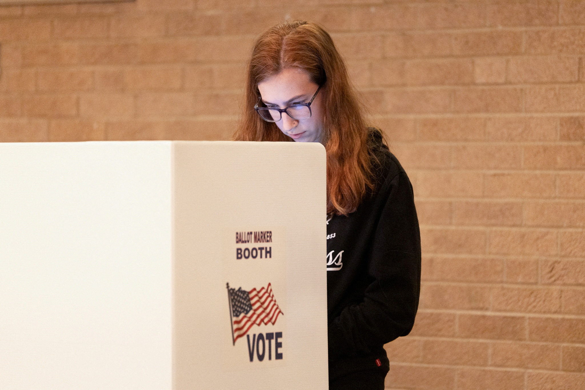 一名选民在俄亥俄州哥伦布市决定是否将堕胎保护写入州宪法时填写他们的选票,2023年11月7日,美国。路透社/Megan Jelinger/文件照片