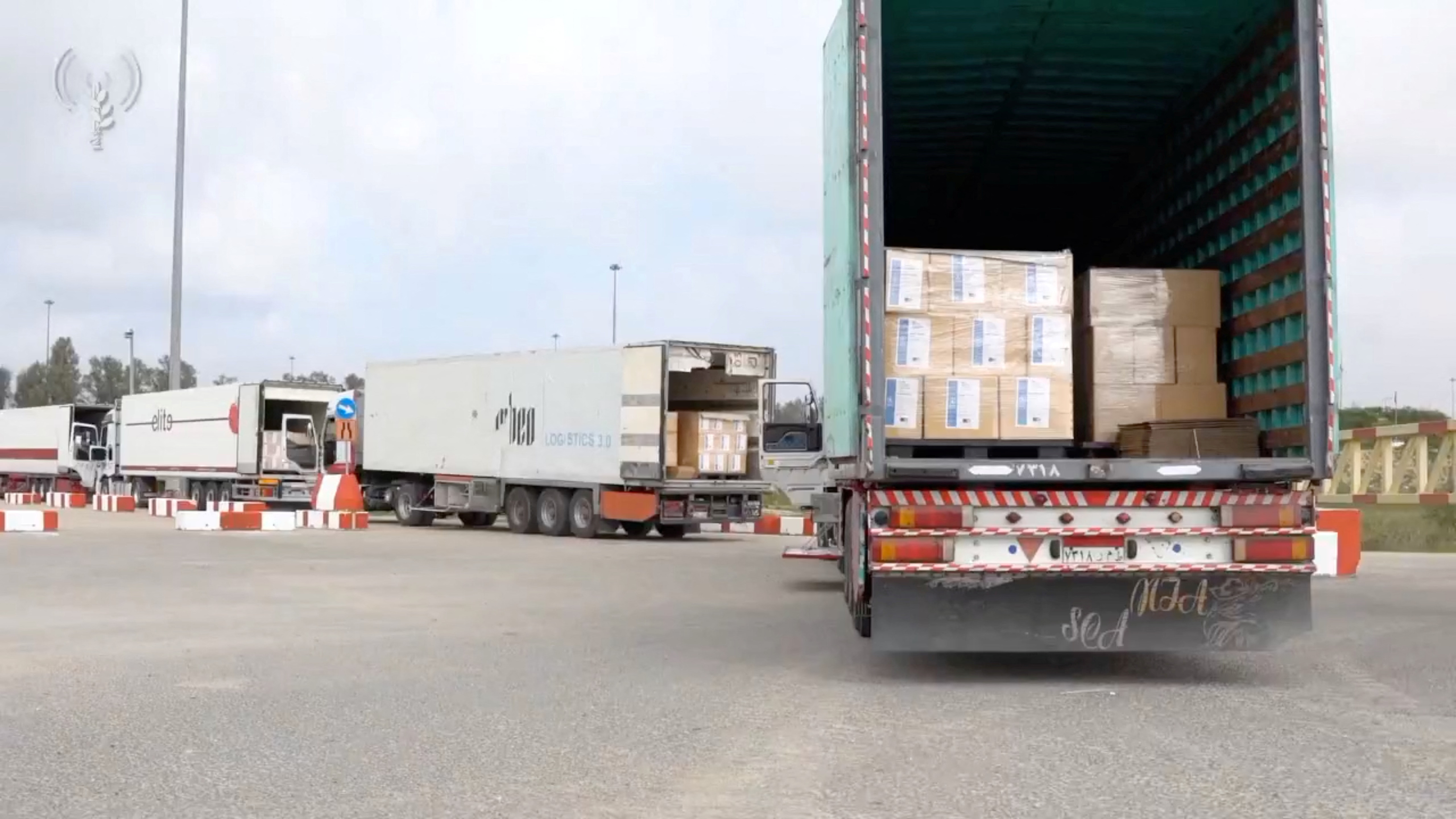人道主义援助卡车在克雷姆沙隆过境点排队等待检查,这是以色列和巴勒斯坦伊斯兰组织哈马斯之间持续冲突的一部分,该过境点位于以色列、加沙和埃及之间的边界,这是从2023年12月12日发布的视频截图。 COGAT通过… 阅读更多