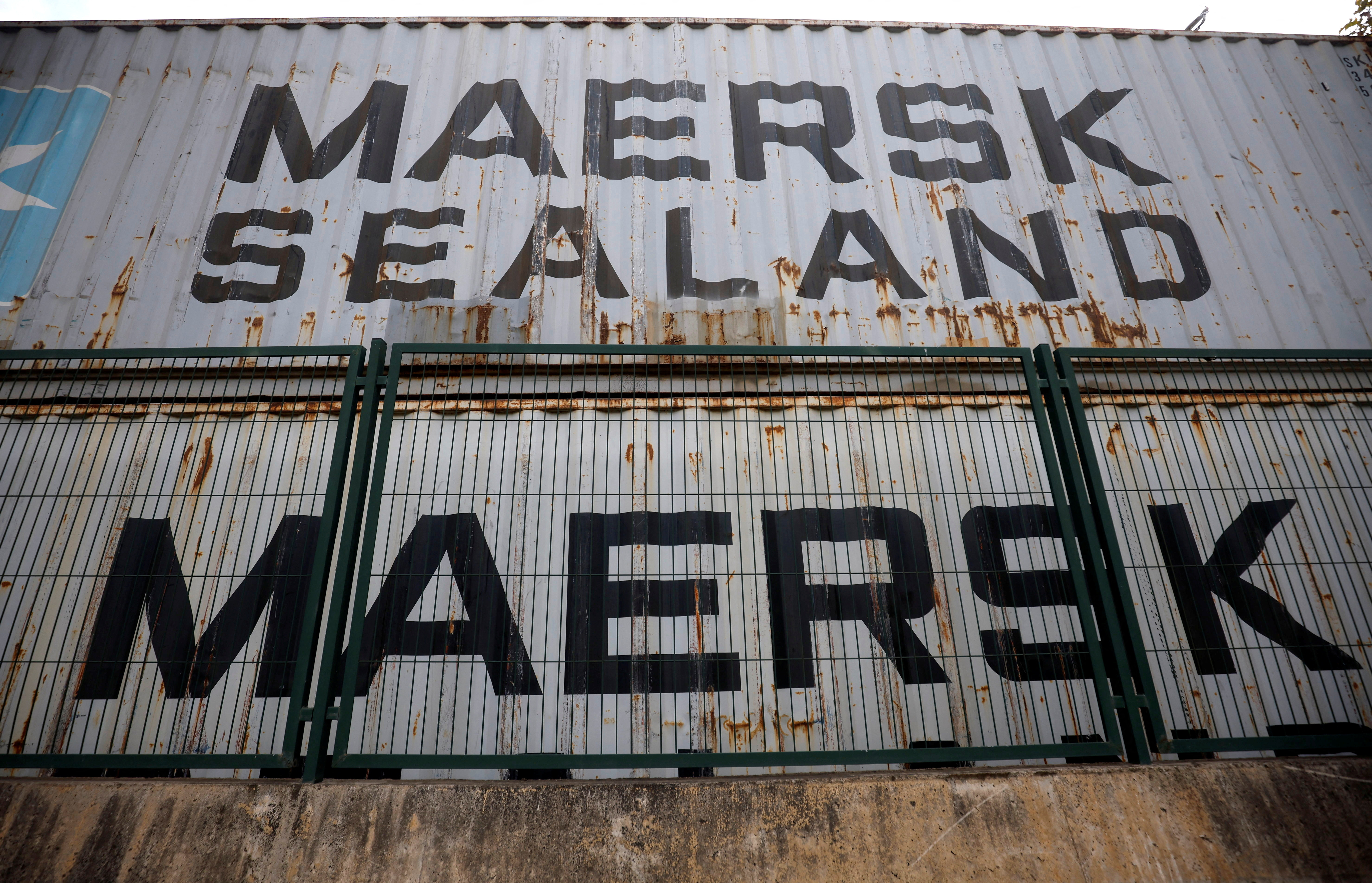 马士基的标志出现在西班牙巴塞罗那自由贸易区存放的集装箱中,2022年11月3日。路透社/阿尔伯特·吉亚/文件照片