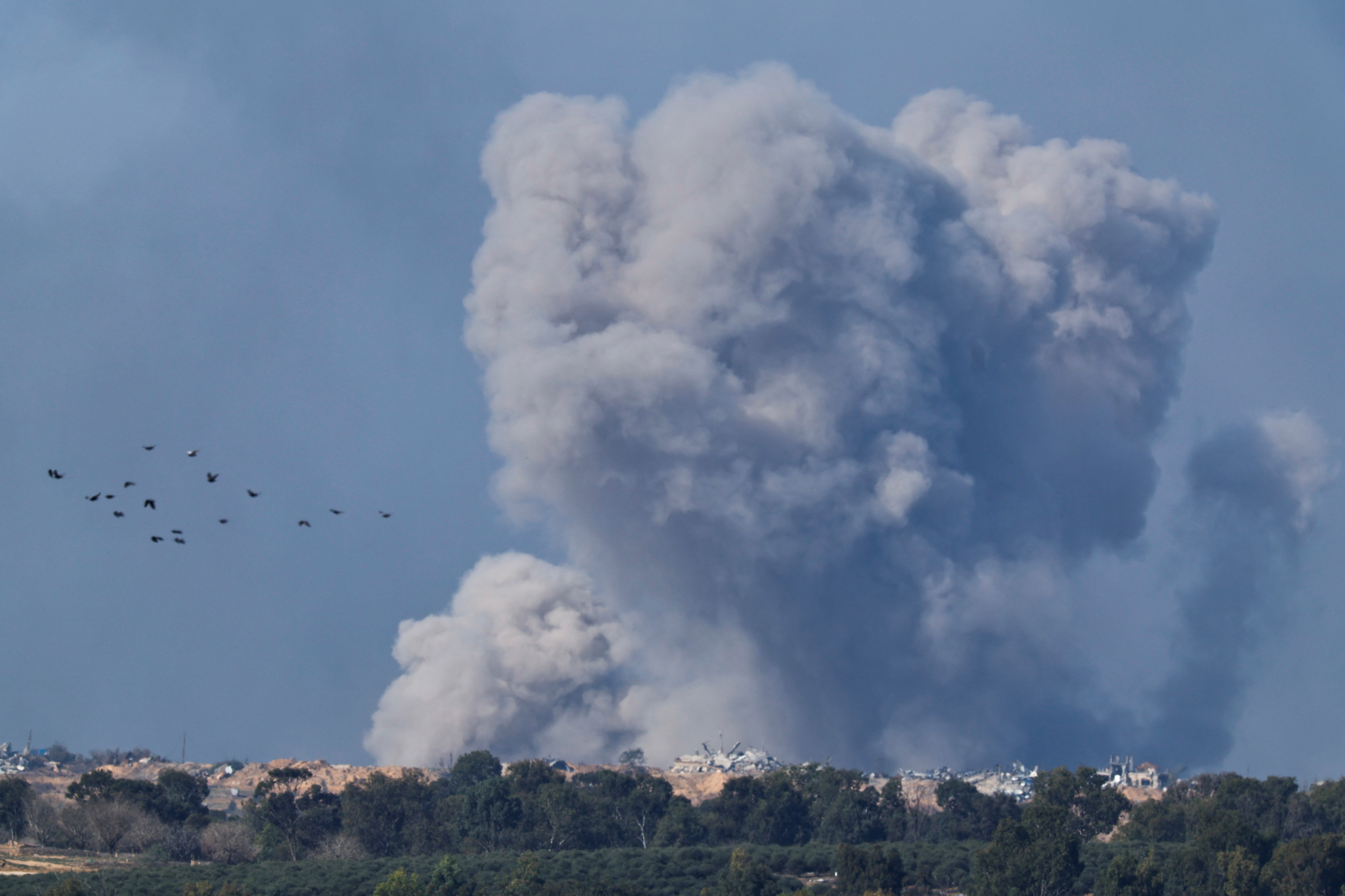 烟雾在加沙地带升起,以色列和巴勒斯坦伊斯兰组织哈马斯之间的冲突仍在进行中,从以色列南部看到,2023年12月20日。路透社/Clodagh Kilcoyne