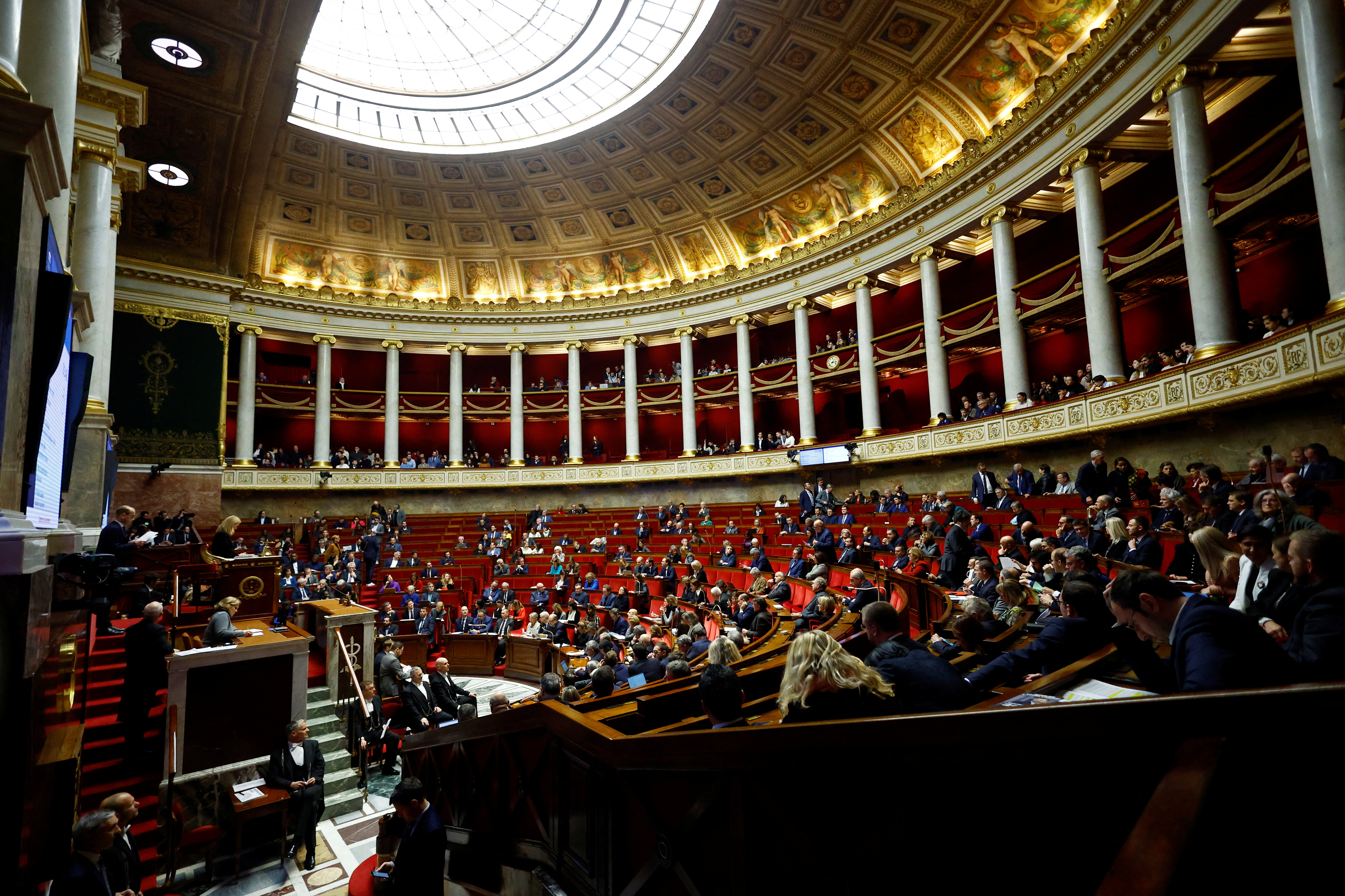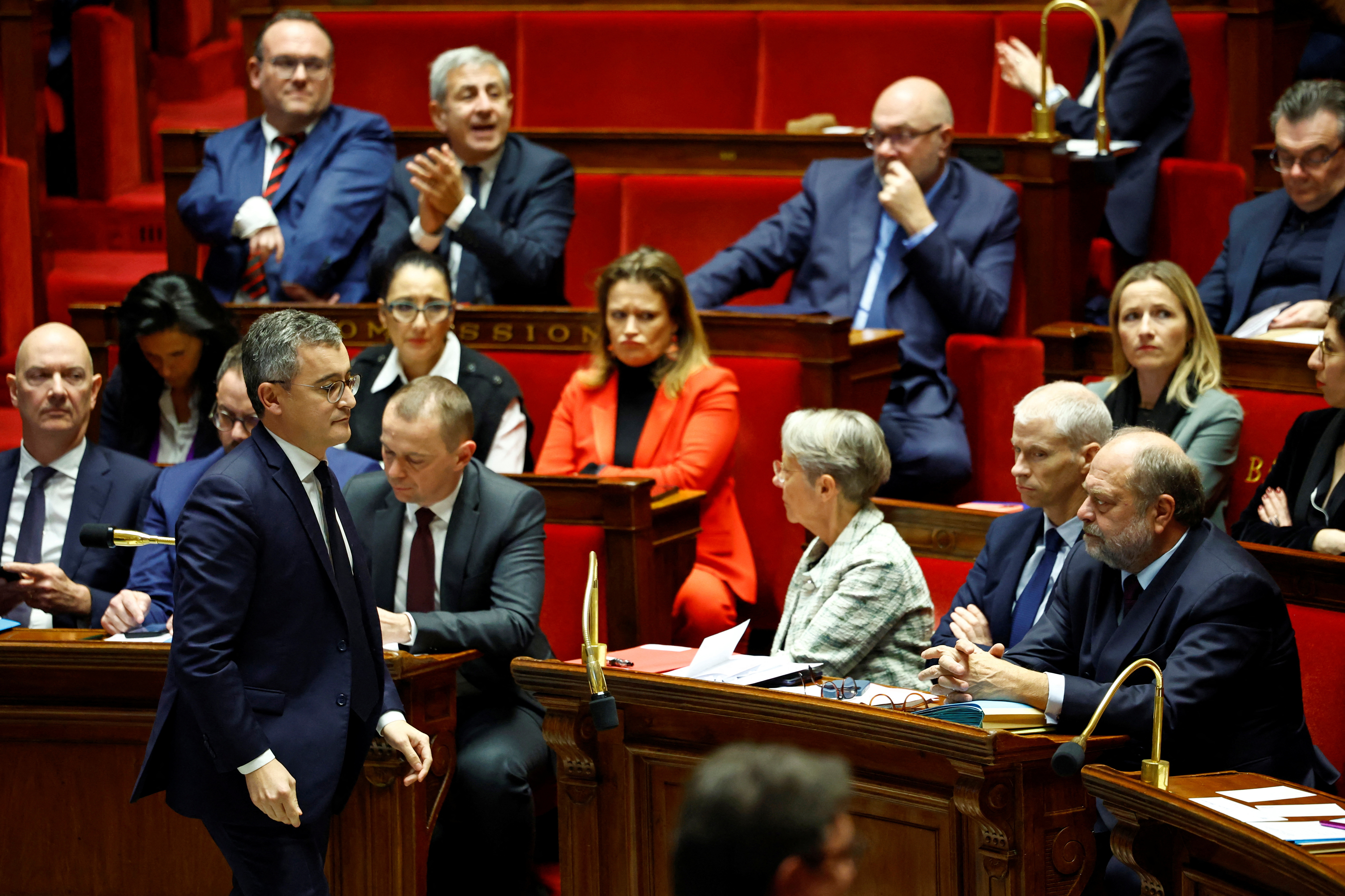 2023年12月19日,法国国民议会在移民法案投票前举行政府提问会议的全景。REUTERS/Sarah Meyssonnier