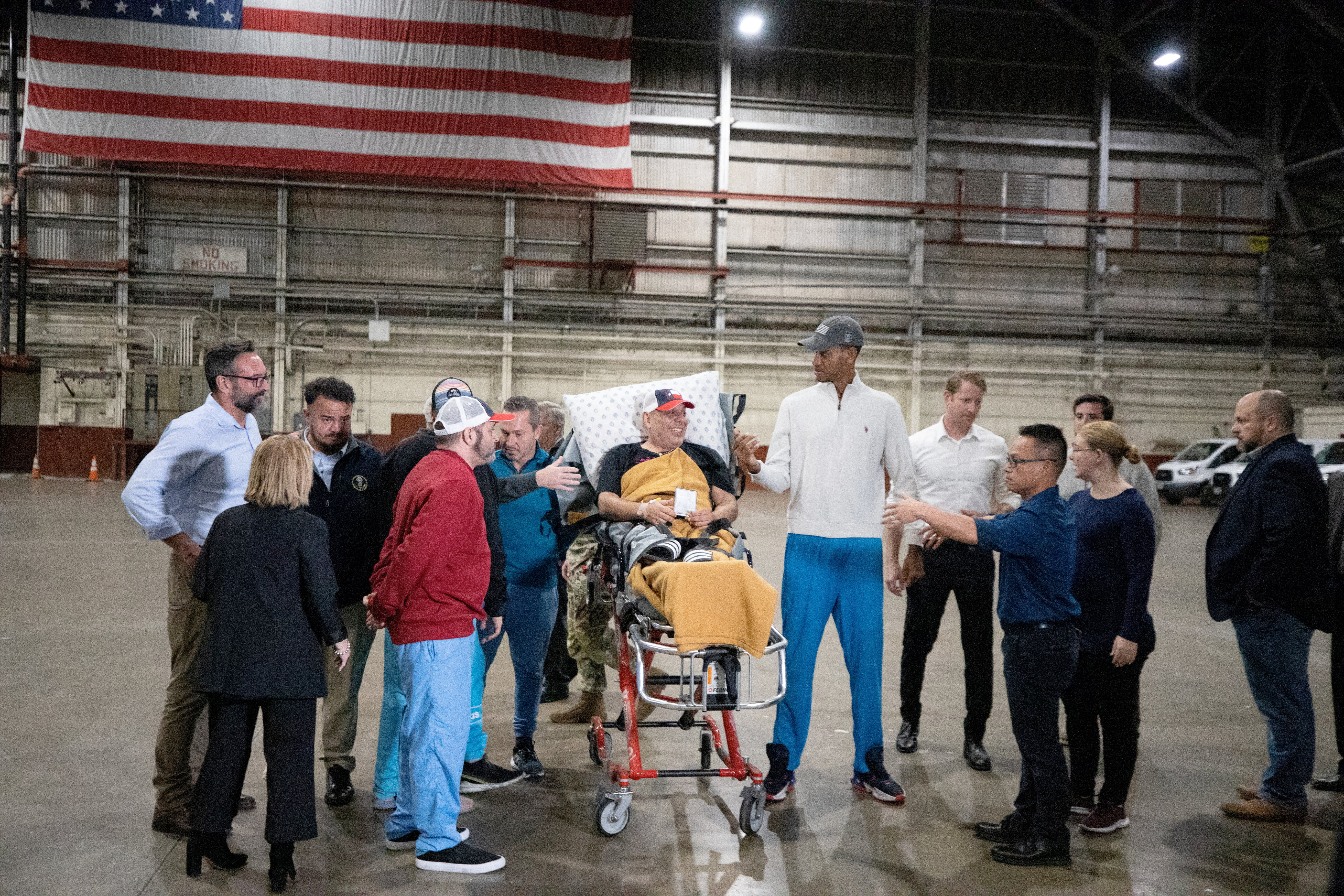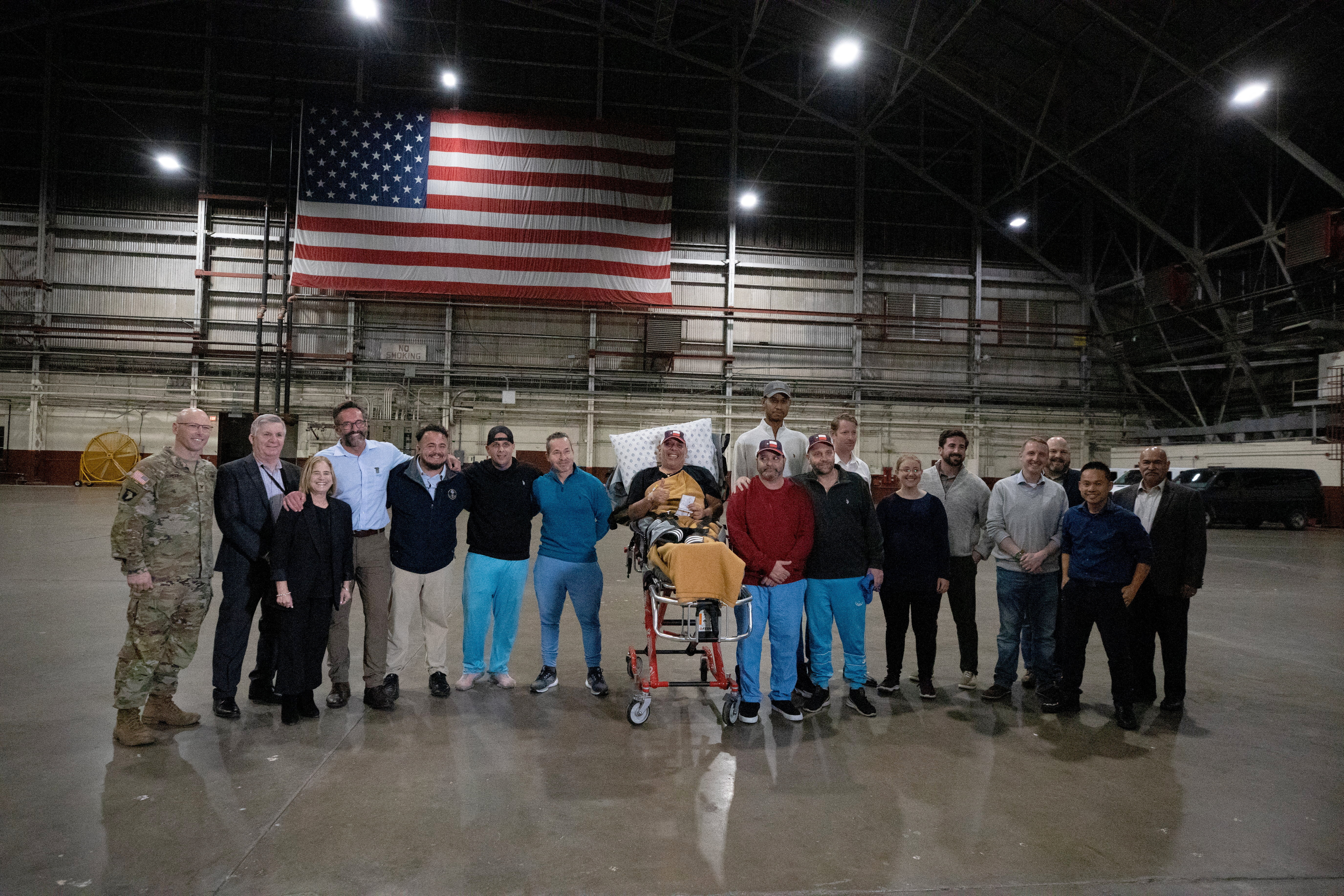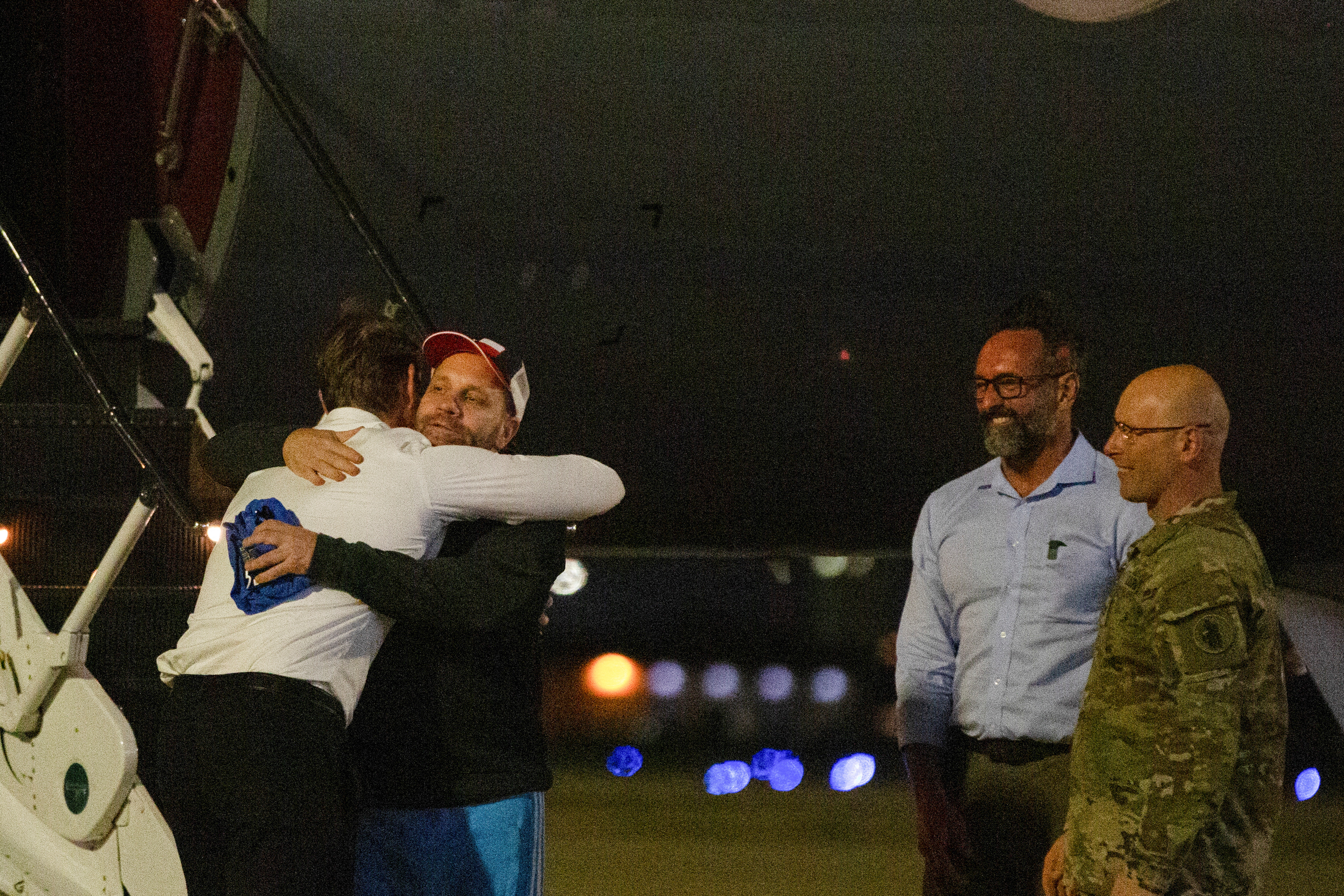 被释放的美国囚犯抵达位于得克萨斯州圣安东尼奥的联合基地,2023年12月20日。路透社/凯利·格林利·比尔摄