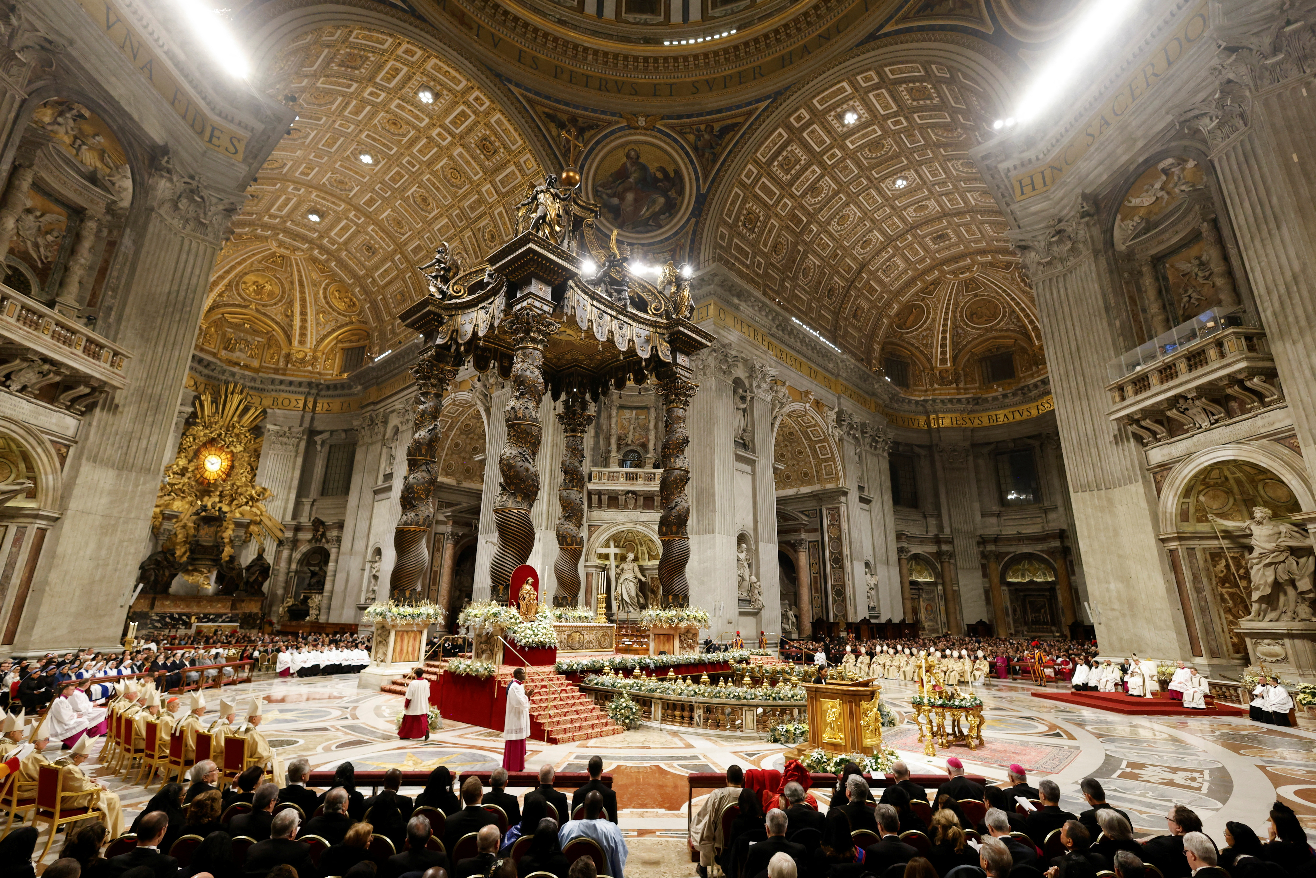 教宗方济各在梵蒂冈圣彼得大教堂庆祝2023年12月24日的圣诞夜弥撒。路透社/雷莫·卡西利摄