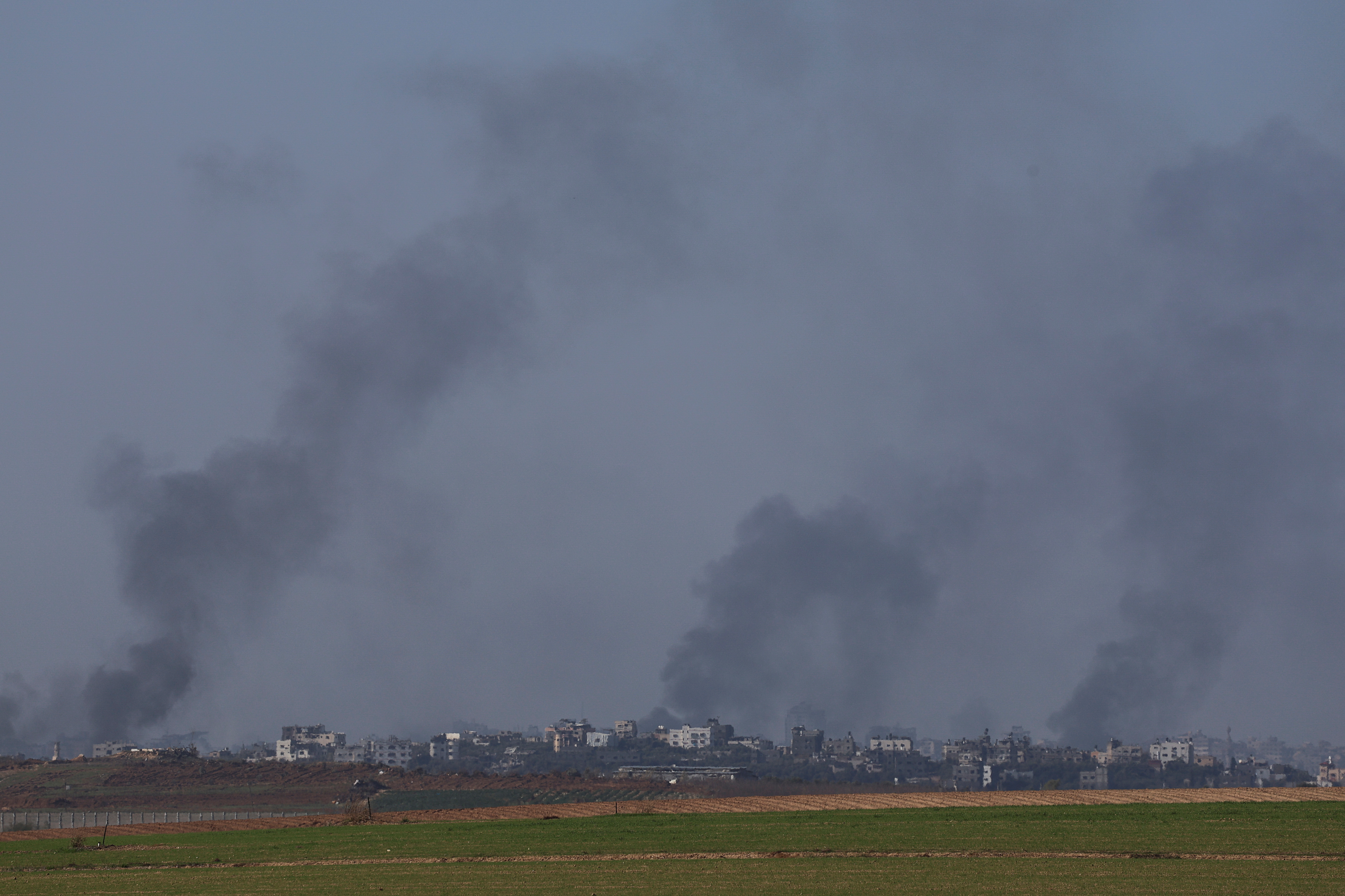 烟雾在加沙上升,以色列和巴勒斯坦伊斯兰组织哈马斯之间的持续冲突中,从以色列南部看到,2023年12月25日。路透社/Violeta Santos Moura