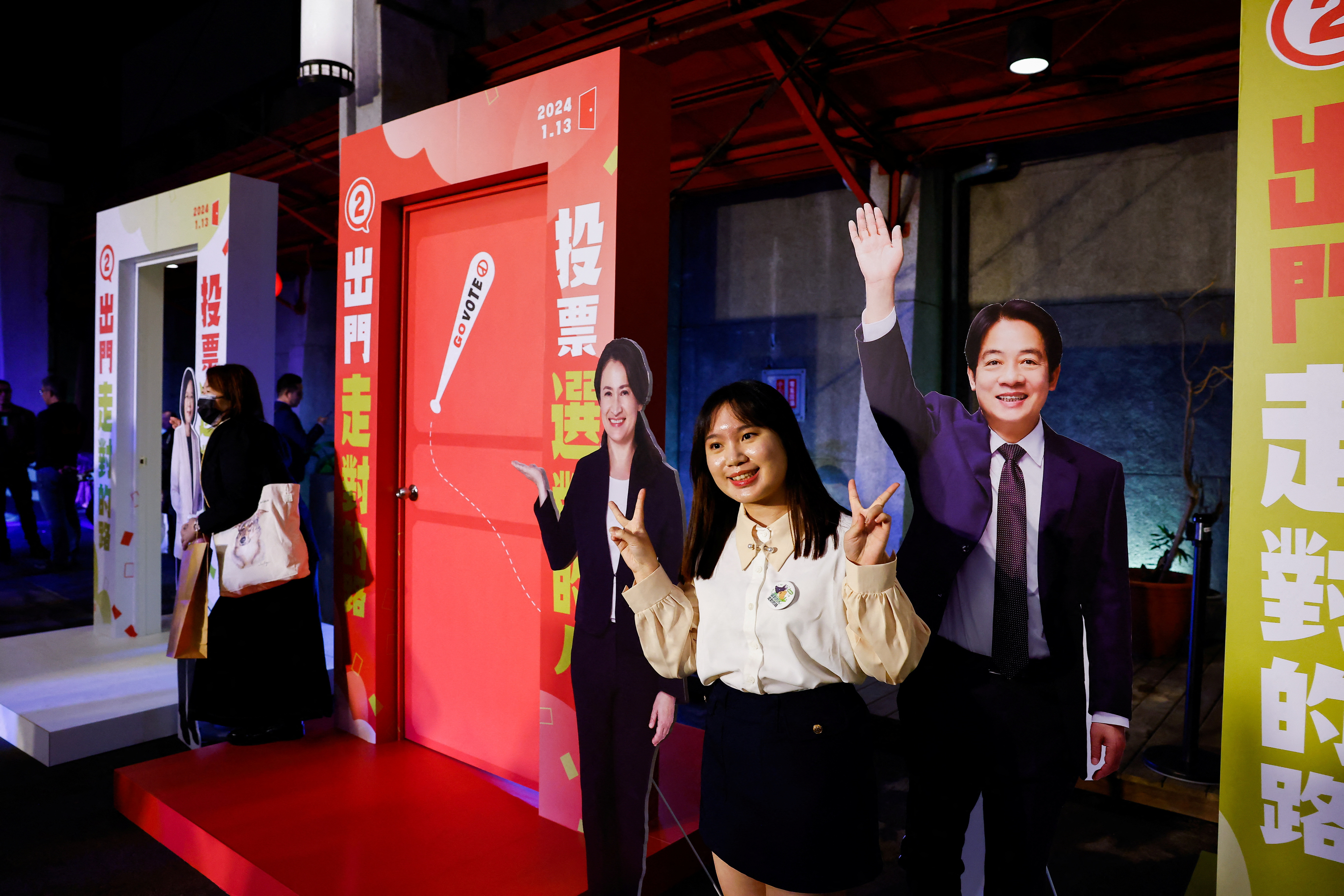 台湾副总统兼执政党民主进步党(DPP)总统候选人赖清德和DPP副总统候选人萧美琴参加了2023年12月29日在台北举行的竞选活动。路透社/安王摄