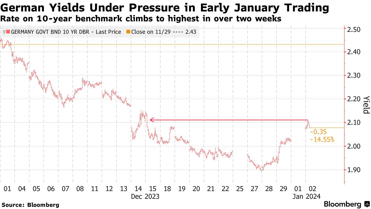 在美国,货币市场首次自12月21日以来押注2024年美联储降息不到150个基点。虽然就业增长速度正在减缓,但弹性劳动力市场支持了经济将在2024年继续扩张,尽管速度较慢的观点。