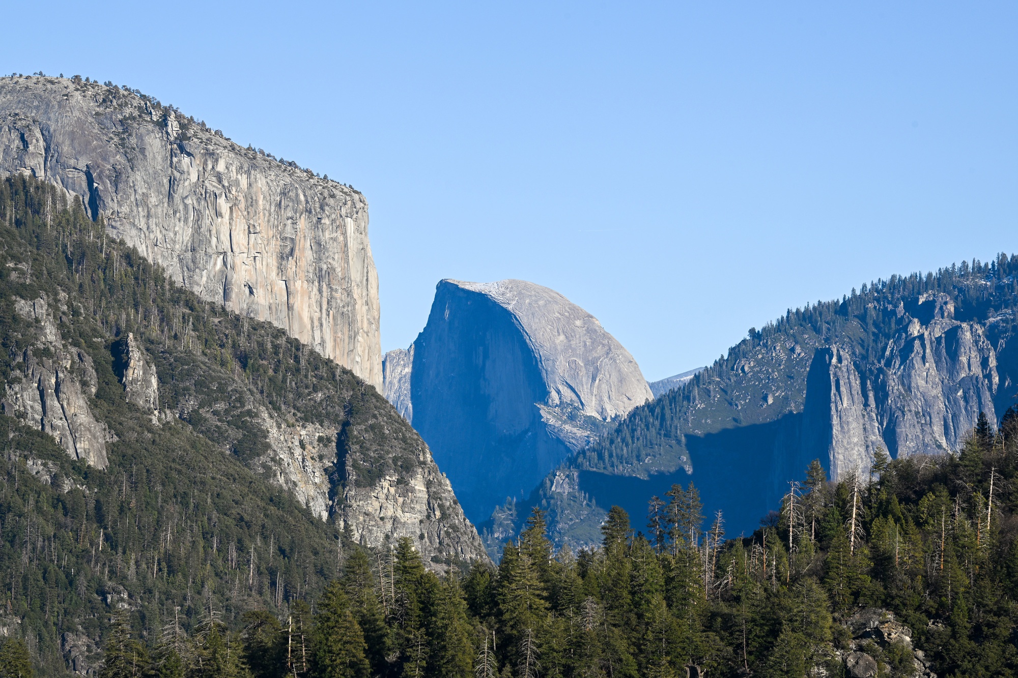 半圆顶和优山美地国家公园的埃尔卡皮坦,加利福尼亚内华达山脉,12月13日。