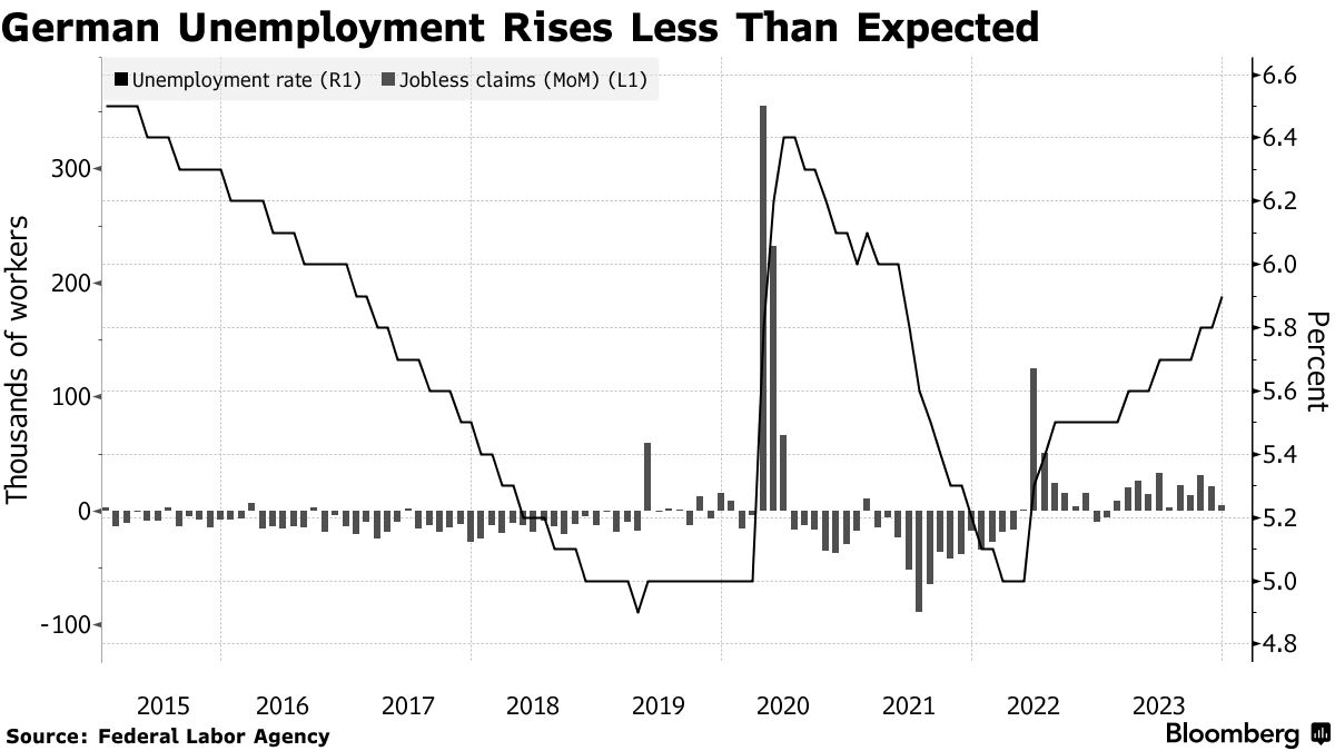 德国失业率上升幅度低于预期,尽管利率上升-彭博社