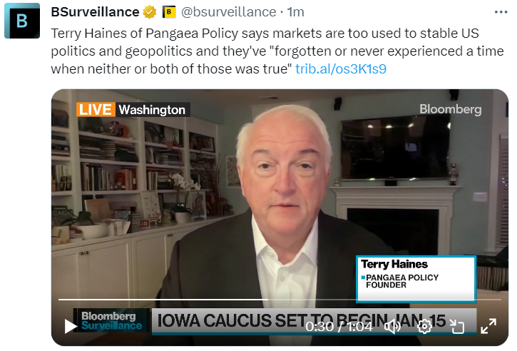 Pangaea Policy的特里·海恩斯表示,乌克兰和加沙战争的融合,与中国就台湾问题的新紧张局势以及美国总统选举可能正在考验投资者正确衡量非金融风险的能力。