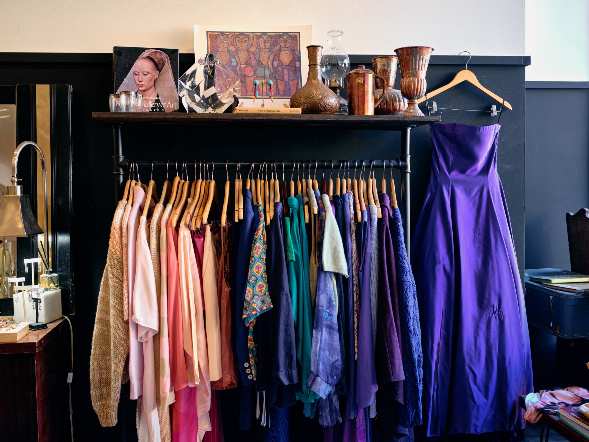 28 Scott Vintage上展示的复古服装。摄影师:Yolanda Hoskey for Bloomberg Pursuits“这有点矛盾,因为我们的主要平台是Instagram,它真的靠小段内容和快速反馈,”泰奥说。“虽然我们希望在社交媒体上成功地呈现这些故事,但我们不想被社交媒体所驱使。我们希望讲述我们认为对我们社区重要的故事,并尽可能地真实地讲述它们。”