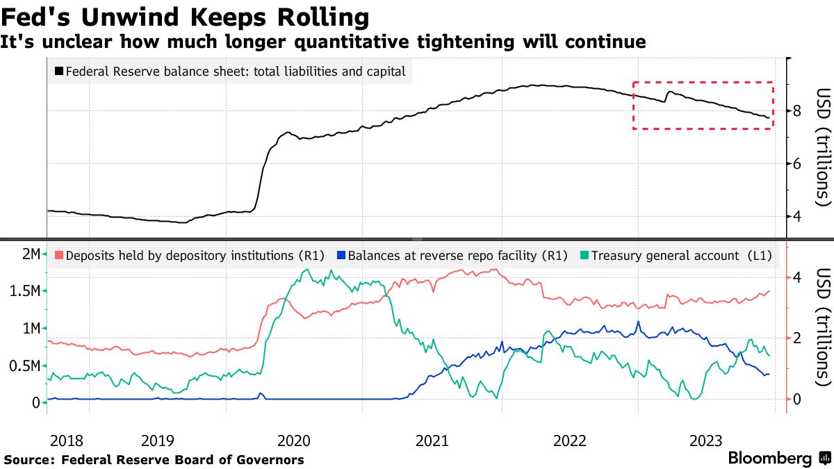“正如他们所说,每个人都有计划,直到他们受到打击,”RBC Capital Markets的美国利率策略负责人Blake Gwinn说道,该公司预计美联储将于2024年中期结束QT。“上一次,他们受到了2019年9月的回购危机的‘打击’,并立即改变了方向,”Gwinn说。