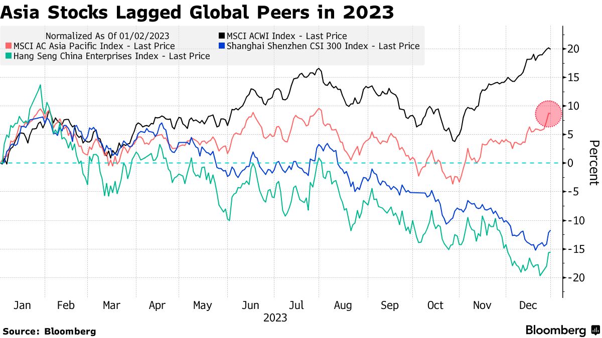 亚洲股市可以期待2024年的利率下调和美元走弱带来的提振,但决定该地区表现与同行的是中国。