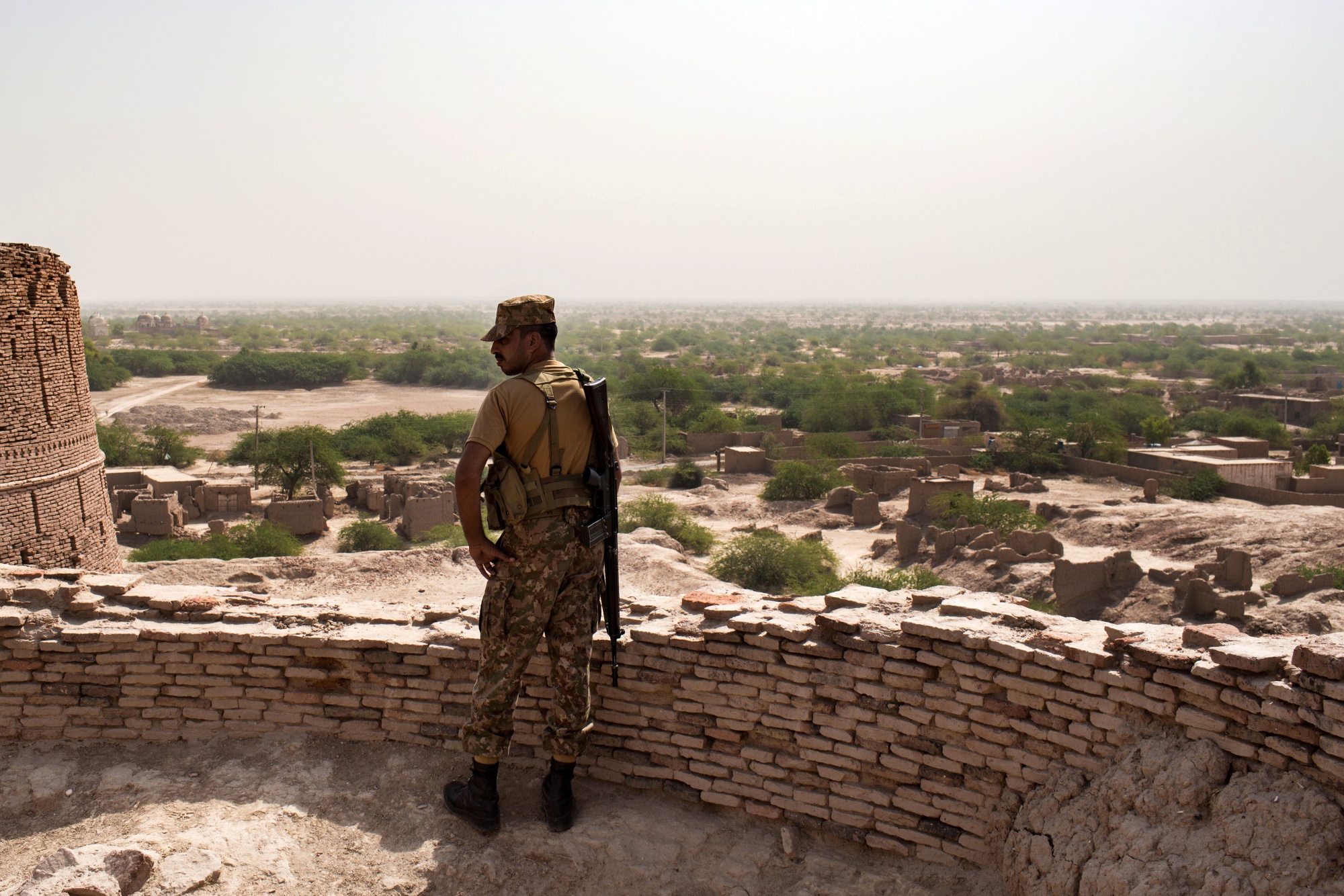 在德拉瓦尔堡垒上眺望乔利斯坦沙漠的士兵。
