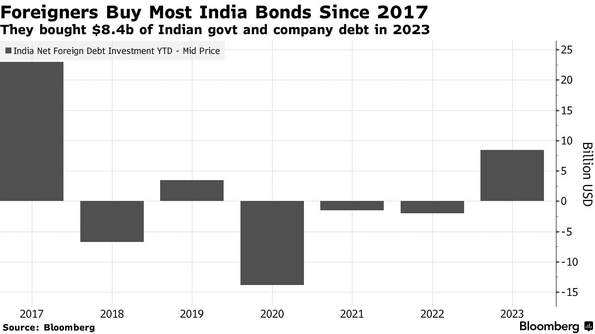 印度债券迎来自2020年以来的首次年度涨幅——彭博社