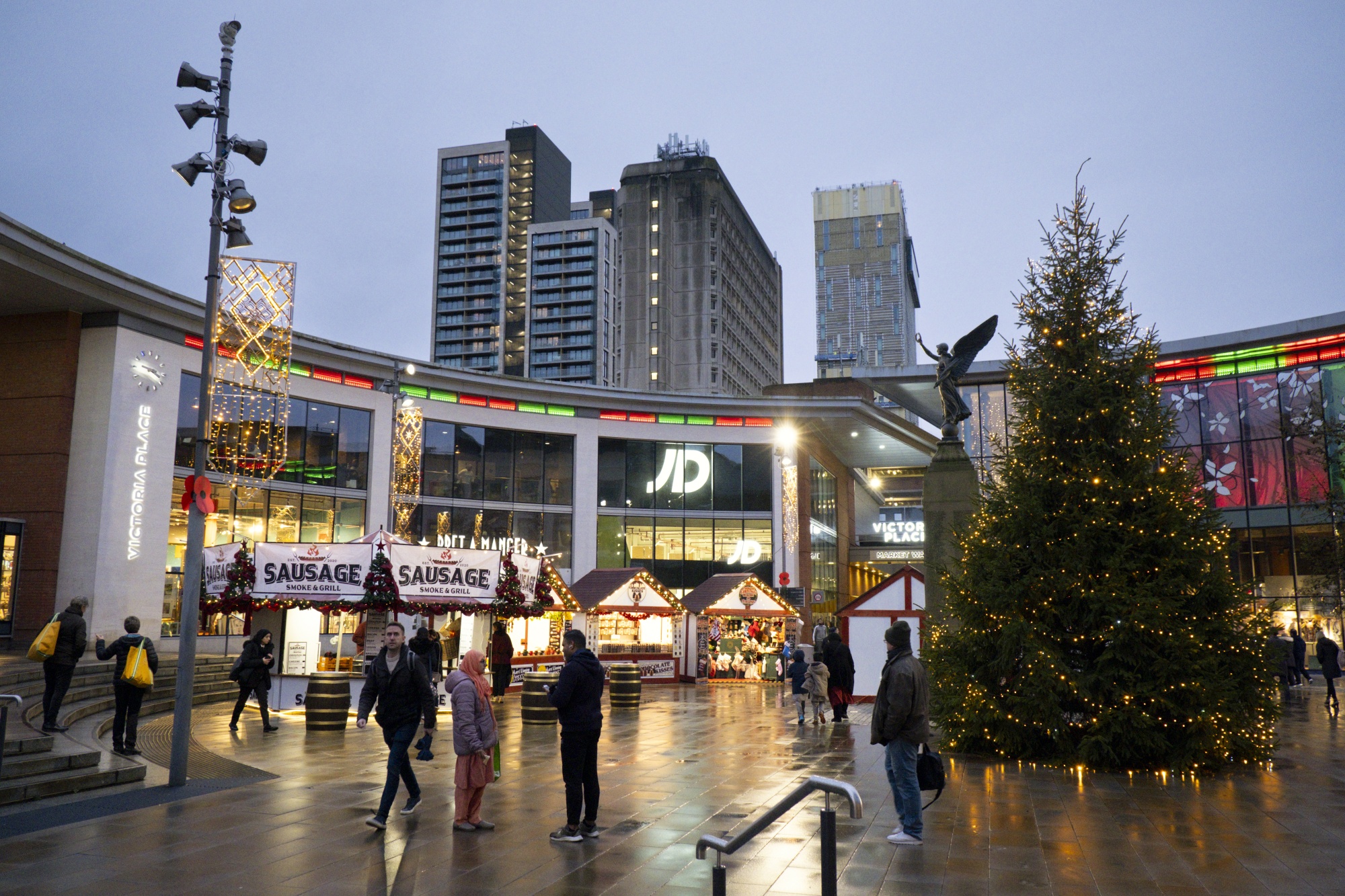 希尔顿酒店的摩天大楼俯瞰着沃金的维多利亚广场购物中心。