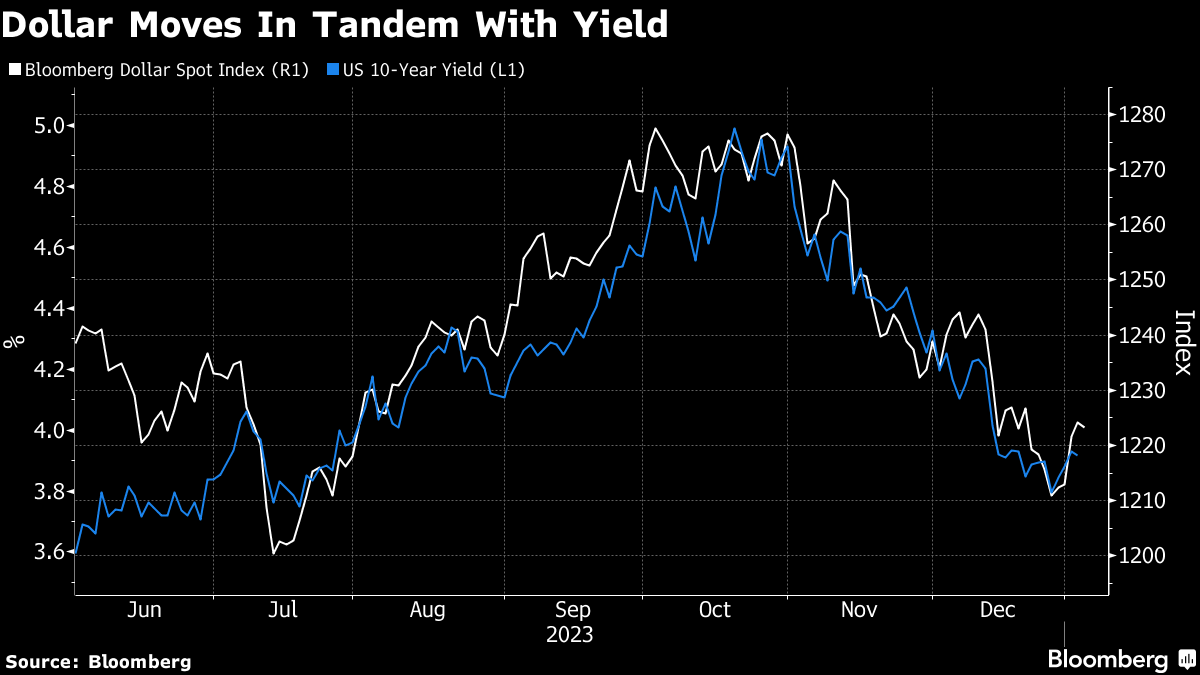 上个月,美联储政策制定者们一致认为维持一段时间的紧缩立场是合适的,同时承认他们可能已经达到了峰值利率,并将在2024年开始降息,根据周三发布的12月12-13日联邦公开市场委员会会议记录。与此同时,仅仅几天前还在大举押注美联储今年将进行六次以上的降息的债券交易商似乎已经 三思。