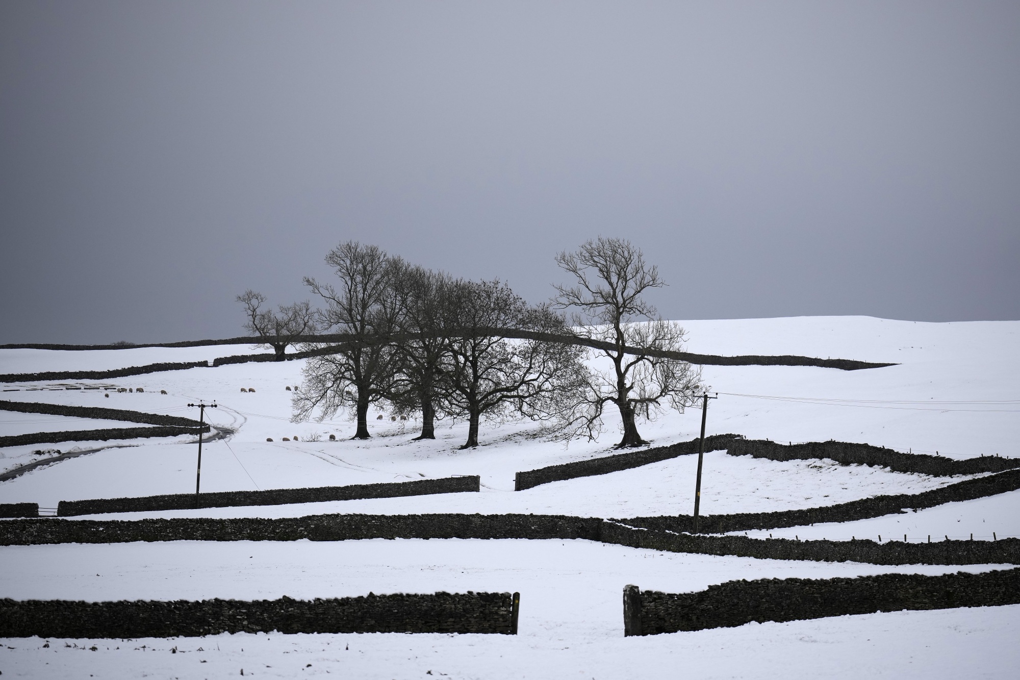 英国温德米尔附近的雪和冰冻温度,12月份。