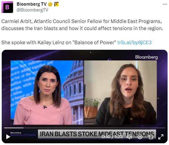今天在彭博电视台的权力平衡节目中,主持人凯利·莱因兹采访了法学教授兼前联邦检察官杰西卡·罗斯,谈论特朗普的法律案件进展。在昨天的节目中,大西洋理事会的卡米尔·阿比特谈到了中东地区不断上升的风险。