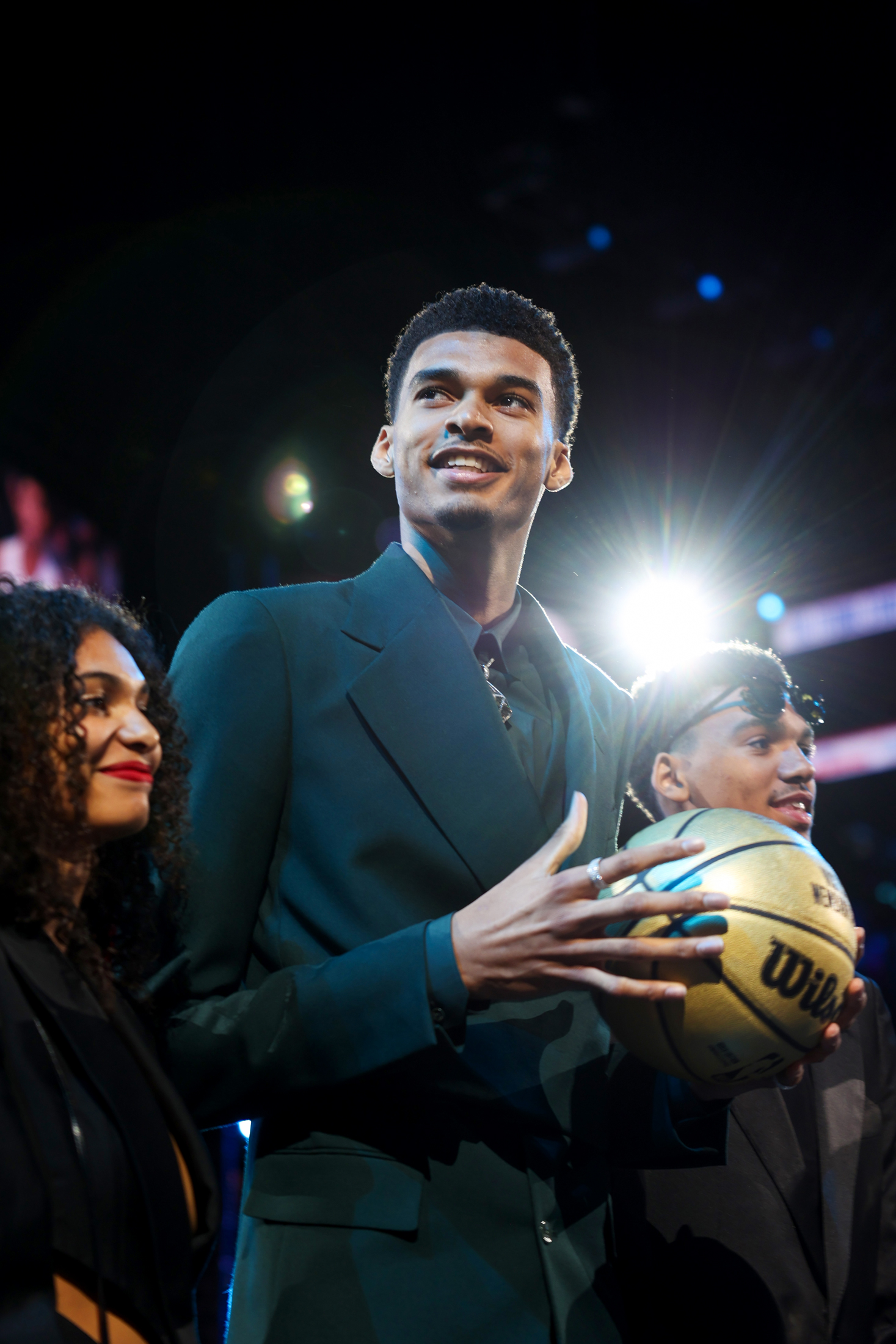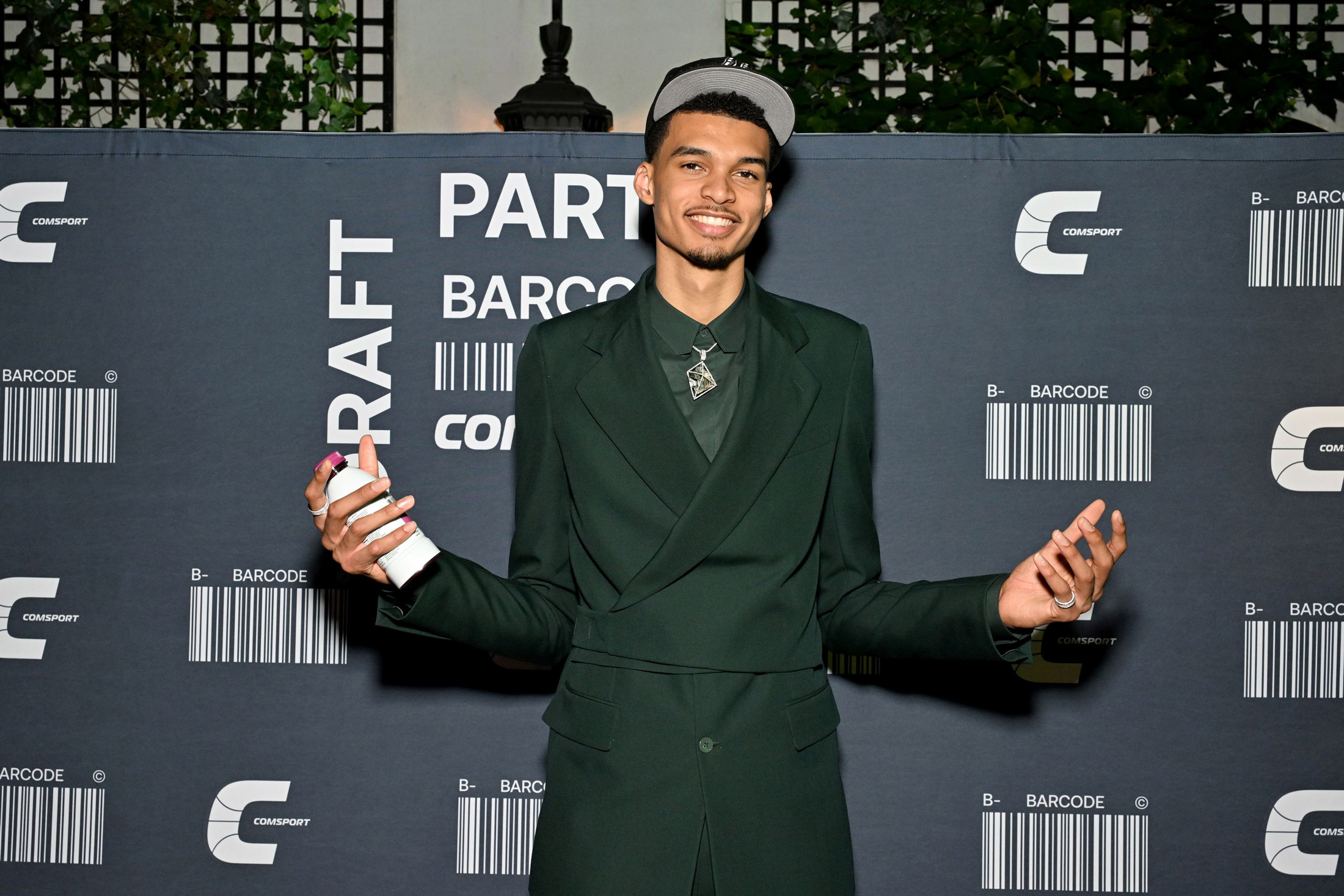 维克多·温班亚马在2023年NBA选秀前夕,于6月22日在纽约布鲁克林的巴克莱中心。