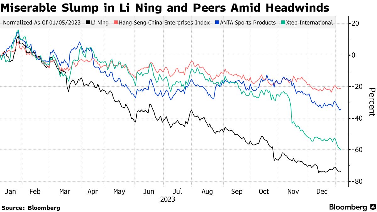 中国顶级运动服装制造商李宁再次在2024年初陷入困境-彭博社