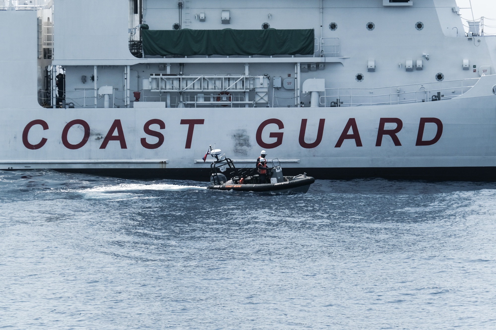 菲律宾海岸警卫队与日本和美国海岸警卫队在菲律宾马尼拉湾海域进行联合海上演习。
