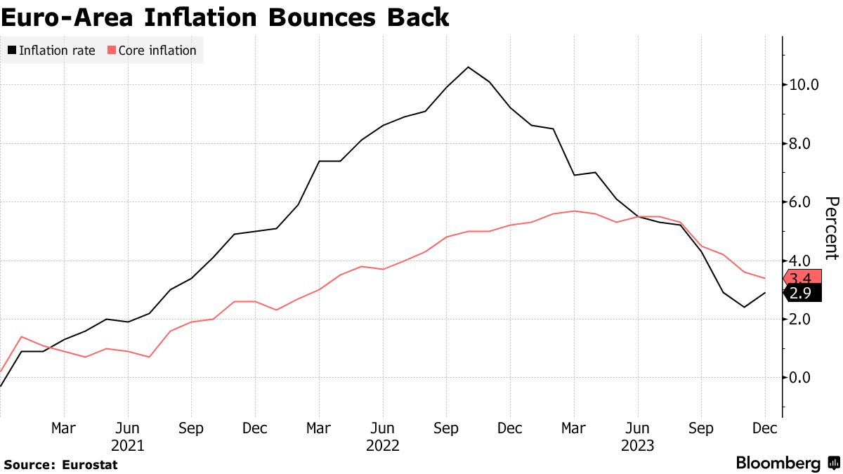 欧元区通胀在12月份有所上升,突显出欧洲央行预计通胀回升至2%的艰难道路,因各国政府取消对高昂能源成本的支持。